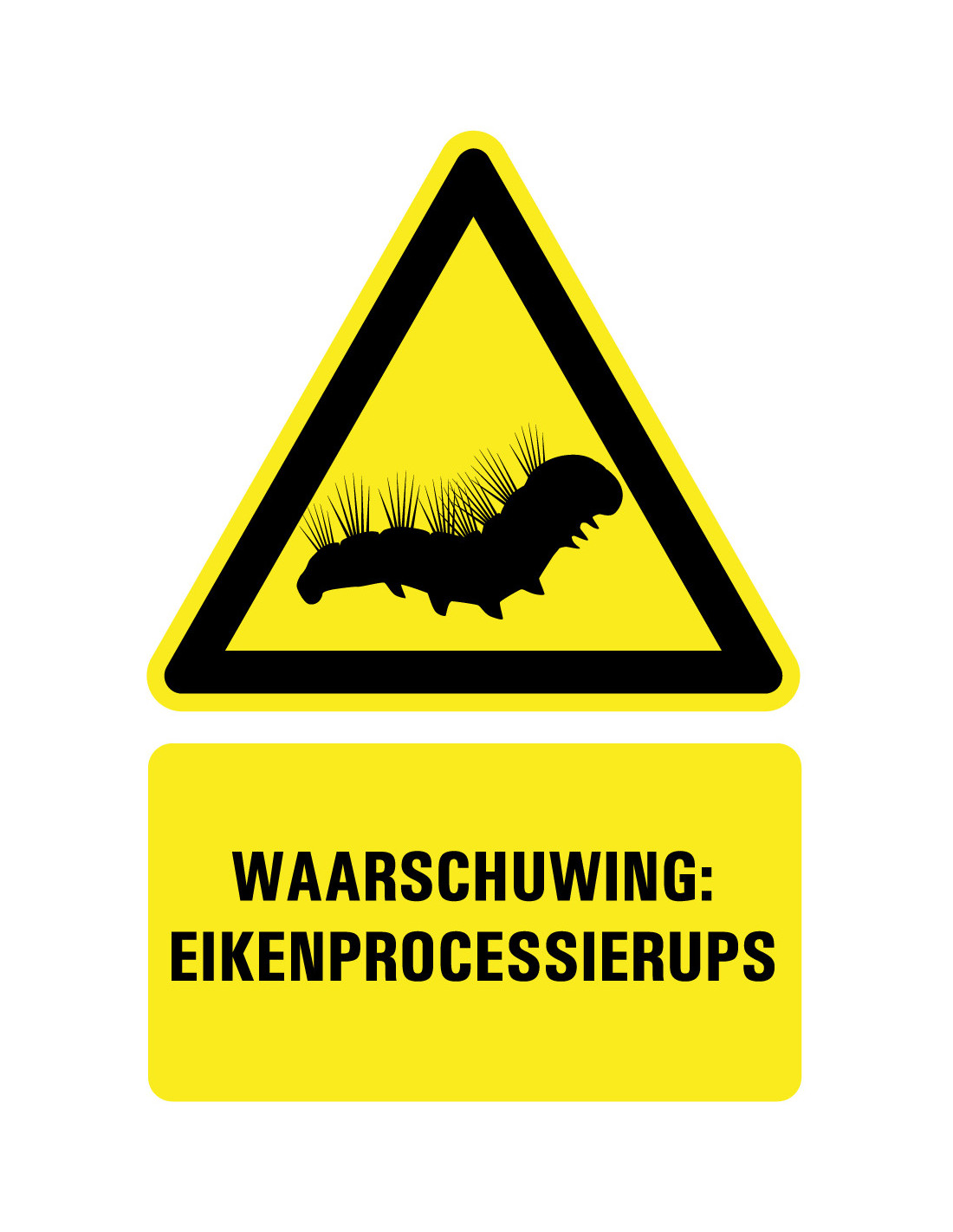 Met dit bord dat waarschuwt voor de eikenprocessierups laat u duidelijk zien dat de eikenprocessierups actief is. Zo is een omgeving hier bekend mee en kan iedereen zijn voorzorgsmaatregelen hiervoor treffen. Op die manier wordt de overlast van de rups beperkt.
