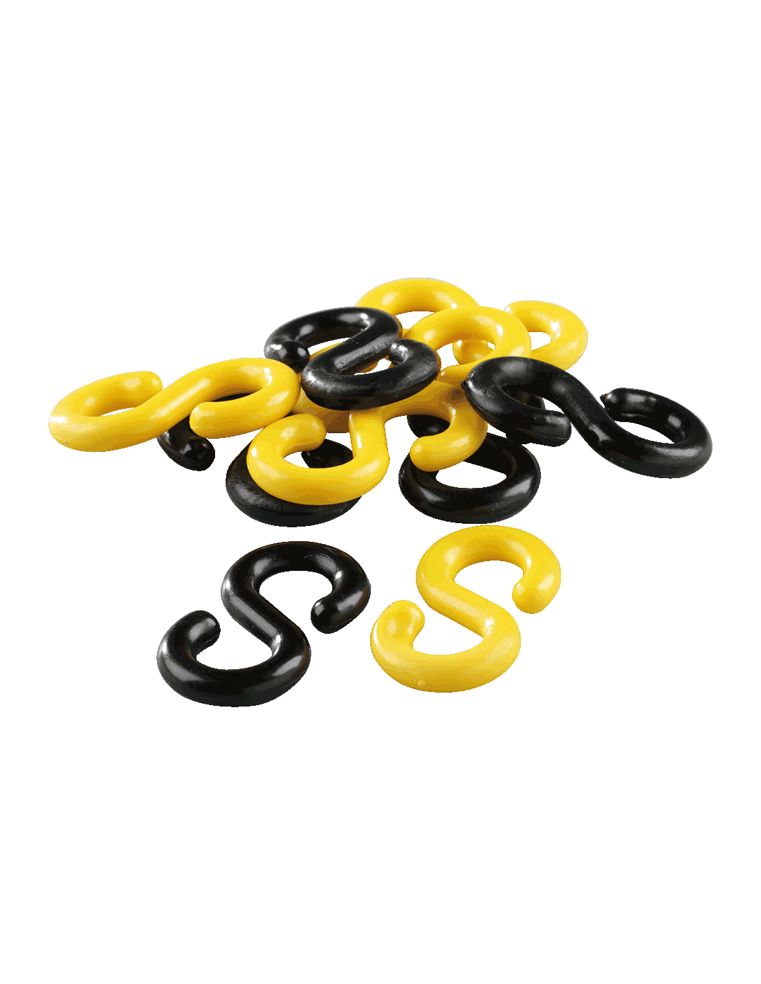 Ben jij op zoek naar handige S-haken die je kunt gebruiken voor het ophangen van kettingen of het verbinden van kettingen? Dan zijn deze kunststof S-haken in geel en zwart de perfecte oplossing voor je.