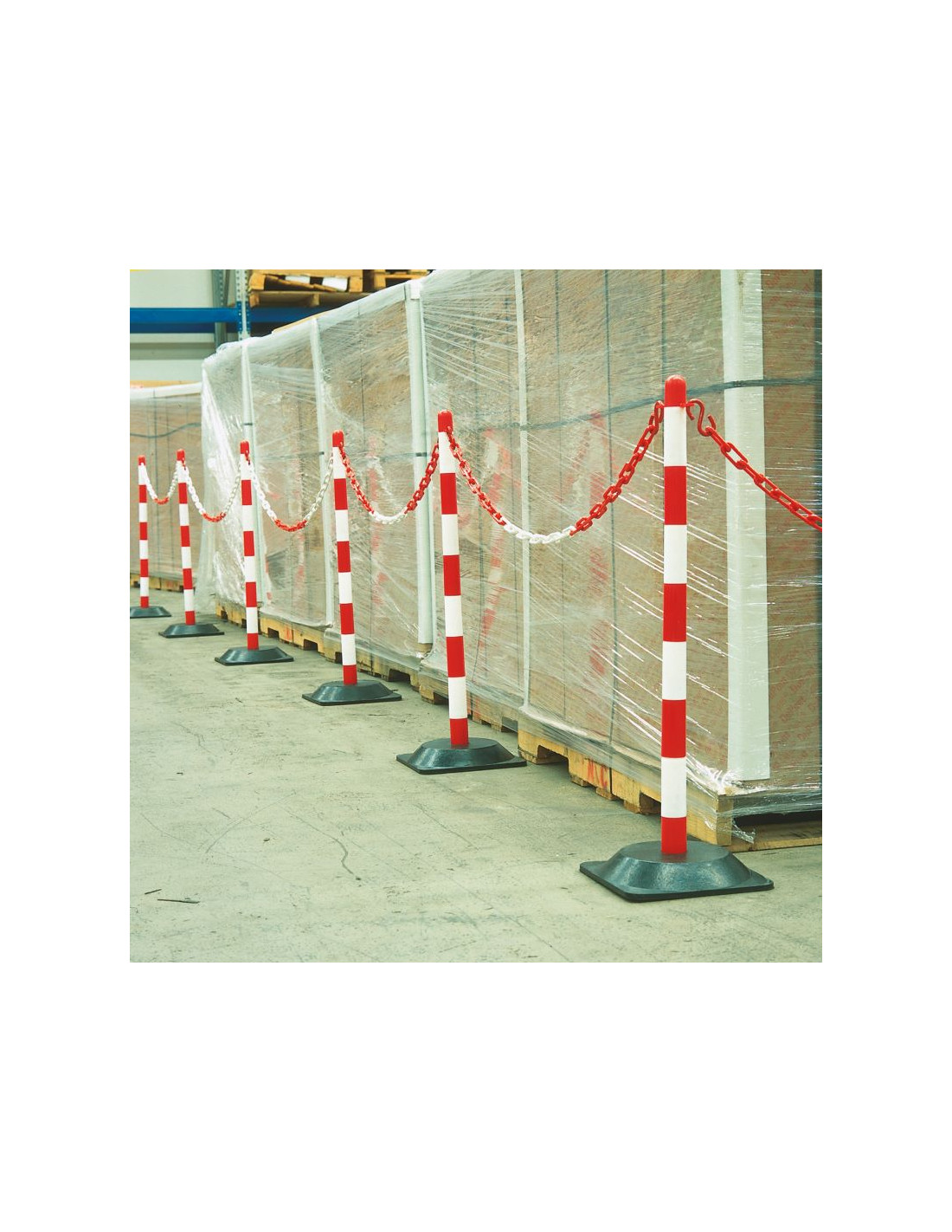 Deze Afzetpalen met ketting en rubberen voet, rood wit, 6 stuks zijn ideaal om gebieden binnen en tijdelijk buiten mee af te zetten. Deze afzetpalen beschikken over een duurzame rubberen voet en zijn gemakkelijk te verplaatsen door het lichte gewicht. Deze set wordt geleverd inclusief 6 afzetpalen, 10 meter afzetketting, 10 verbindingsschakels en 10 ophanghaken.