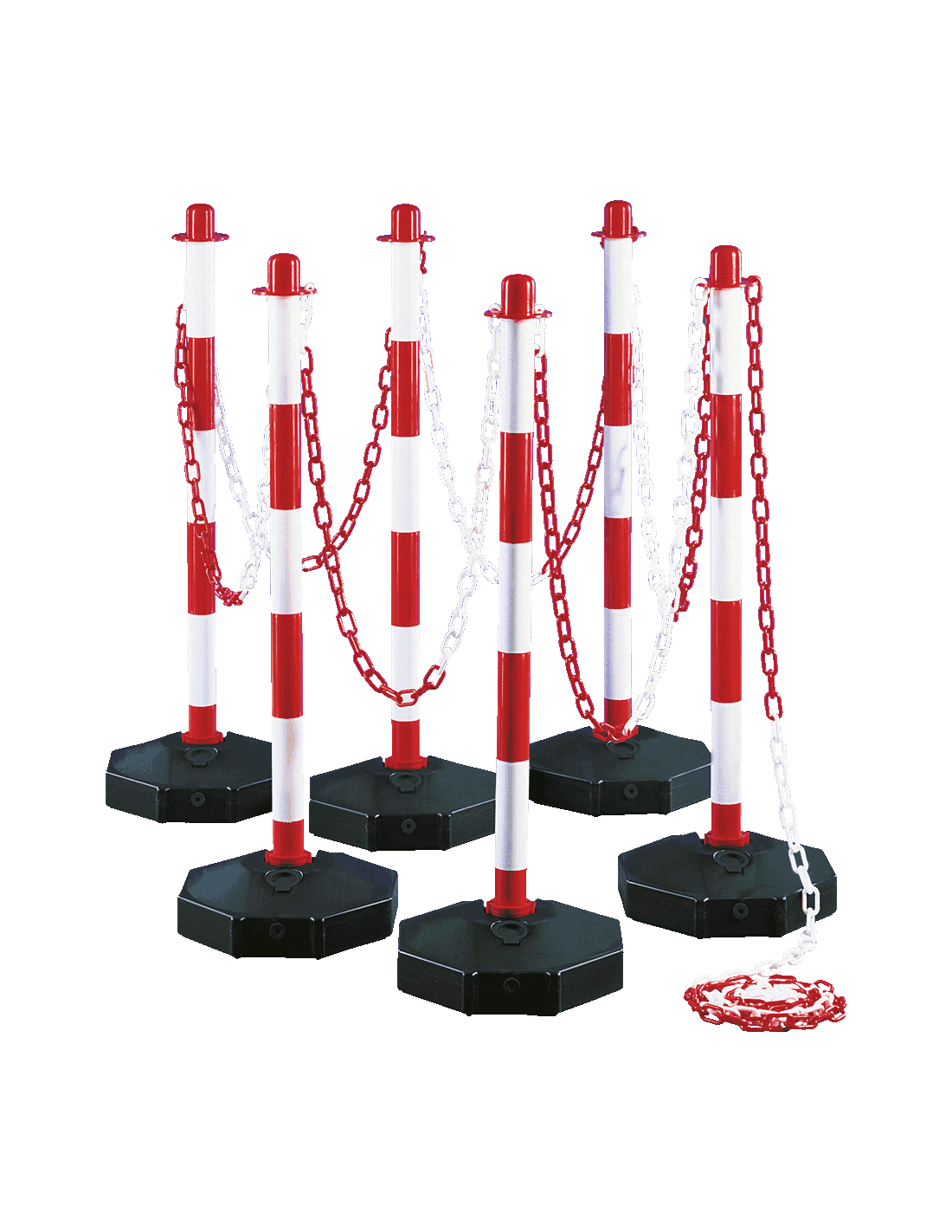 - Set van 6 inklapbare afzetpalen met kunststof ketting
