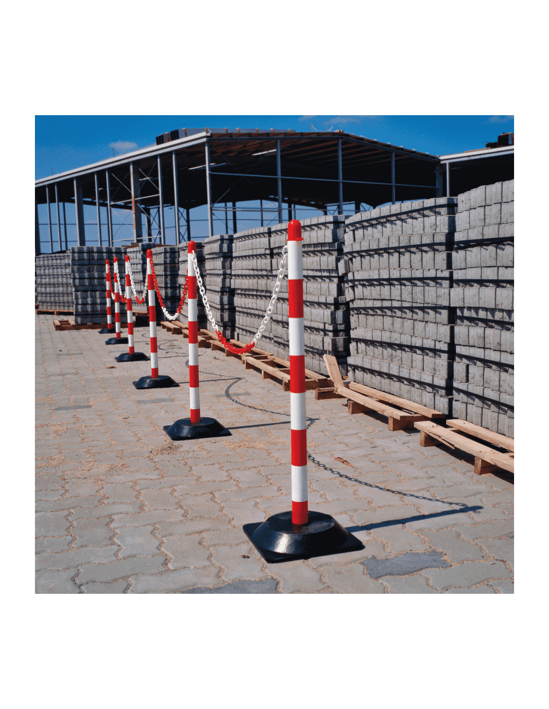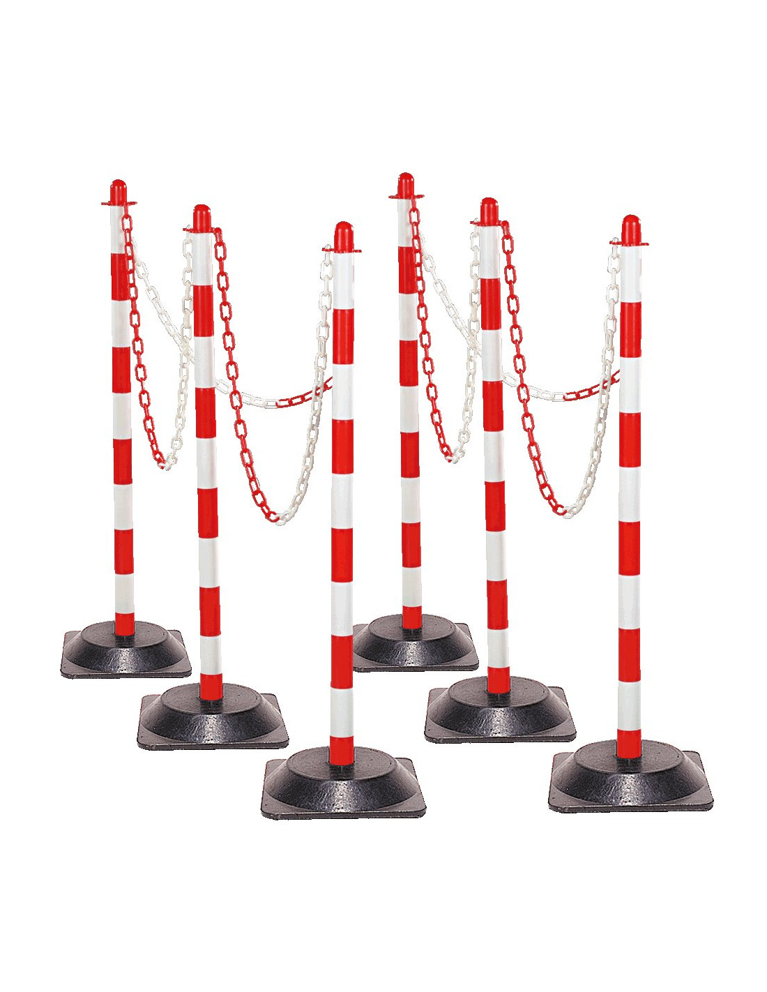 Deze afzetpalen met ketting en rubberen voet, fluo rood wit, 6 stuks zijn ideaal om donkere gebieden binnen mee af te zetten. De afzetpalen zijn namelijk fluorescerend. Deze afzetpalen beschikken over een duurzame rubberen voet en zijn gemakkelijk te verplaatsen door het lichte gewicht van 1,8 kg. Deze set wordt geleverd inclusief 6 afzetpalen, 10 meter afzetketting, 10 verbindingsschakels en 10 reserveschakels.
