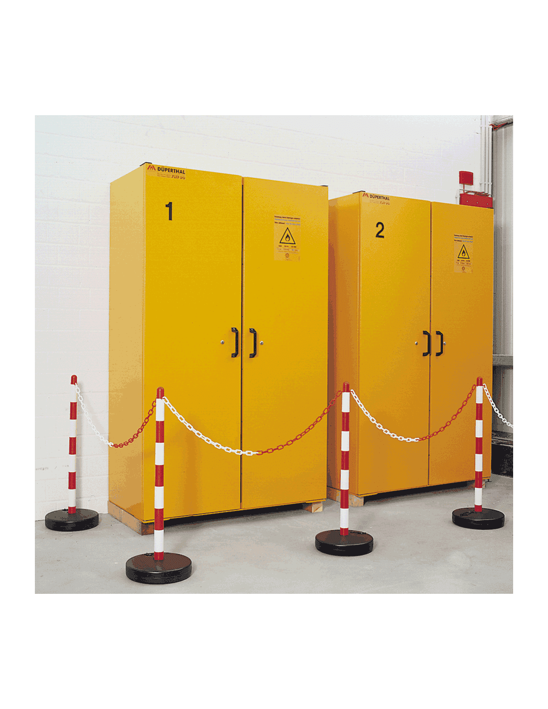 Belangrijkste kenmerken mobiele afzetpalen met ketting, fluo rood wit
