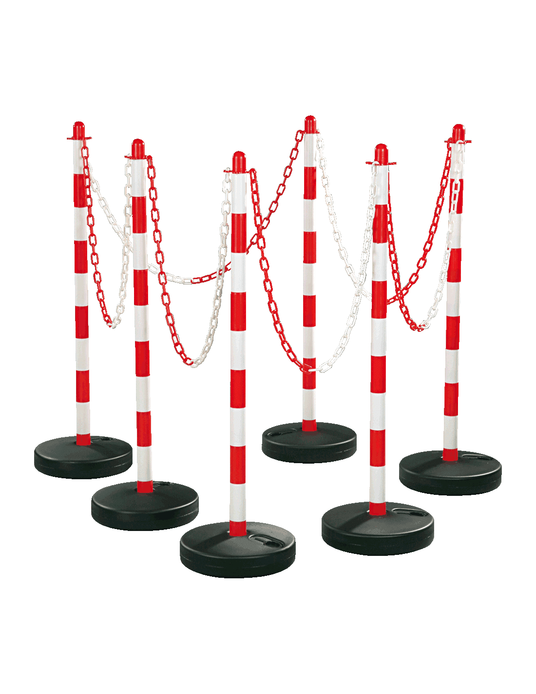 De Mobiele afzetpalen met ketting, fluo rood wit, 6 stuks zijn ideale afzetpalen voor universeel gebruik. De voet van deze afzetpalen is te vullen met water of zand tot circa 5 kg per voet. Op die manier zorg je ervoor dat de paal goed op zijn plek blijft staan. Verder wordt deze set palen geleverd inclusief 10 meter ketting, 10 verbindingsschakels en 10 reserveschakels. Deze afzetpalen zijn fluorescerend, waardoor deze palen ideaal zijn bij donkere omstandigheden.