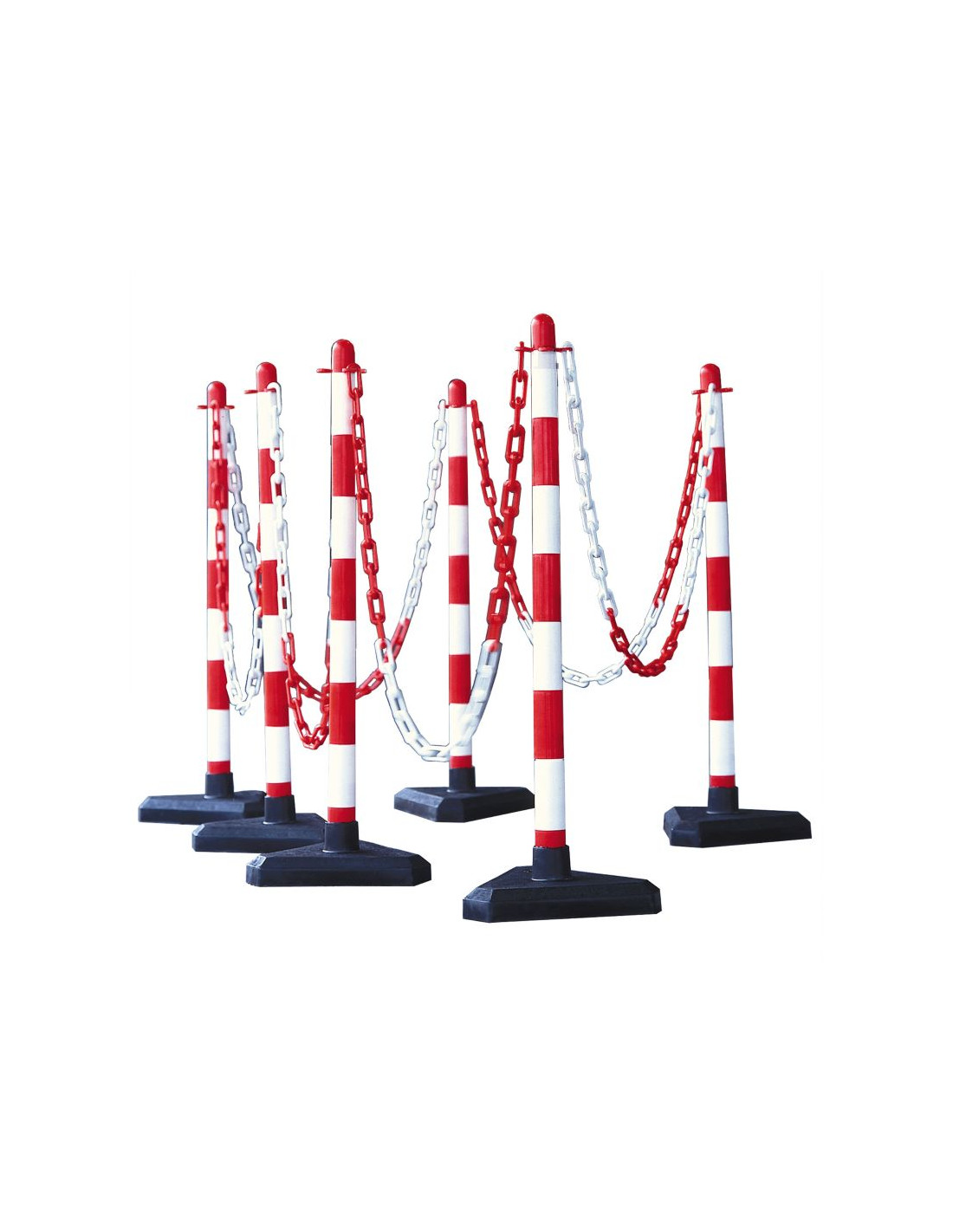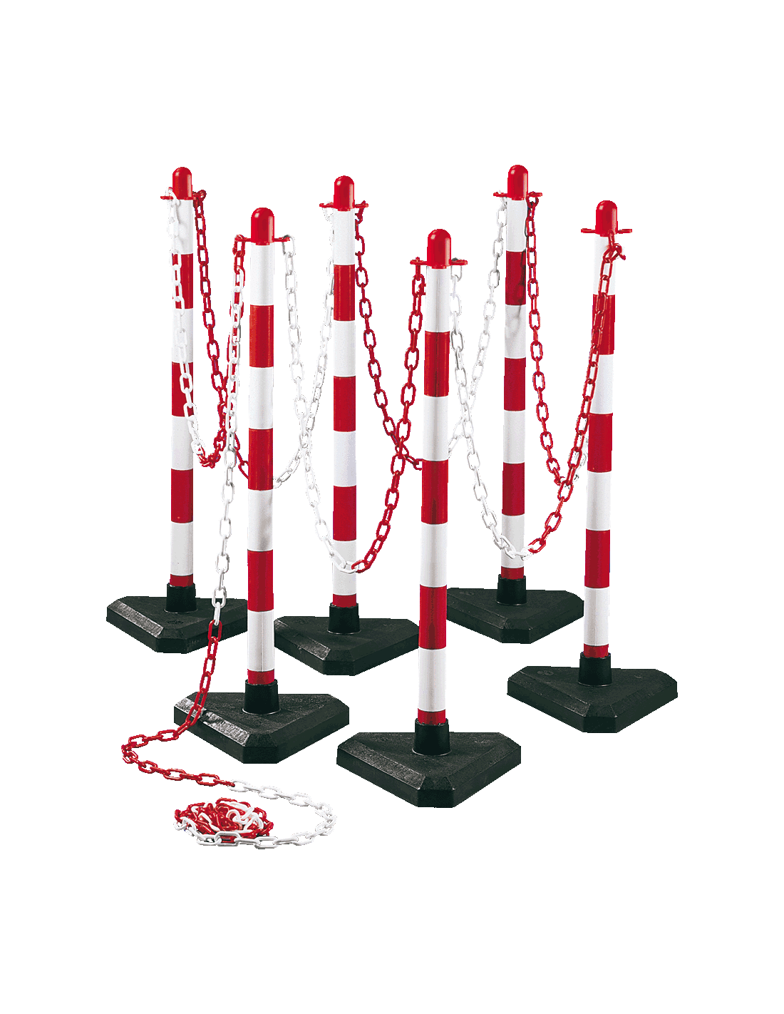 - Set van 6 mobiele afzetpalen met kunststof ketting