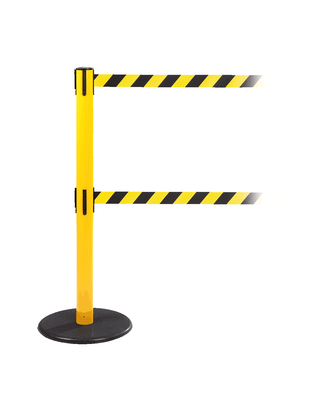 De Afzetpaal met dubbel trekband, geel zwart is een ideale afzetpaal voor binnengebruik. Deze afzetpaal is gemaakt van metalen materiaal en wordt geleverd inclusief twee trekbanden. Zo kun je gemakkelijk een afzetting creëren die je ook kunt openen en dichtmaken met het trekband. Verder is het meegeleverde trekband 50 mm breed en 4 meter lang.