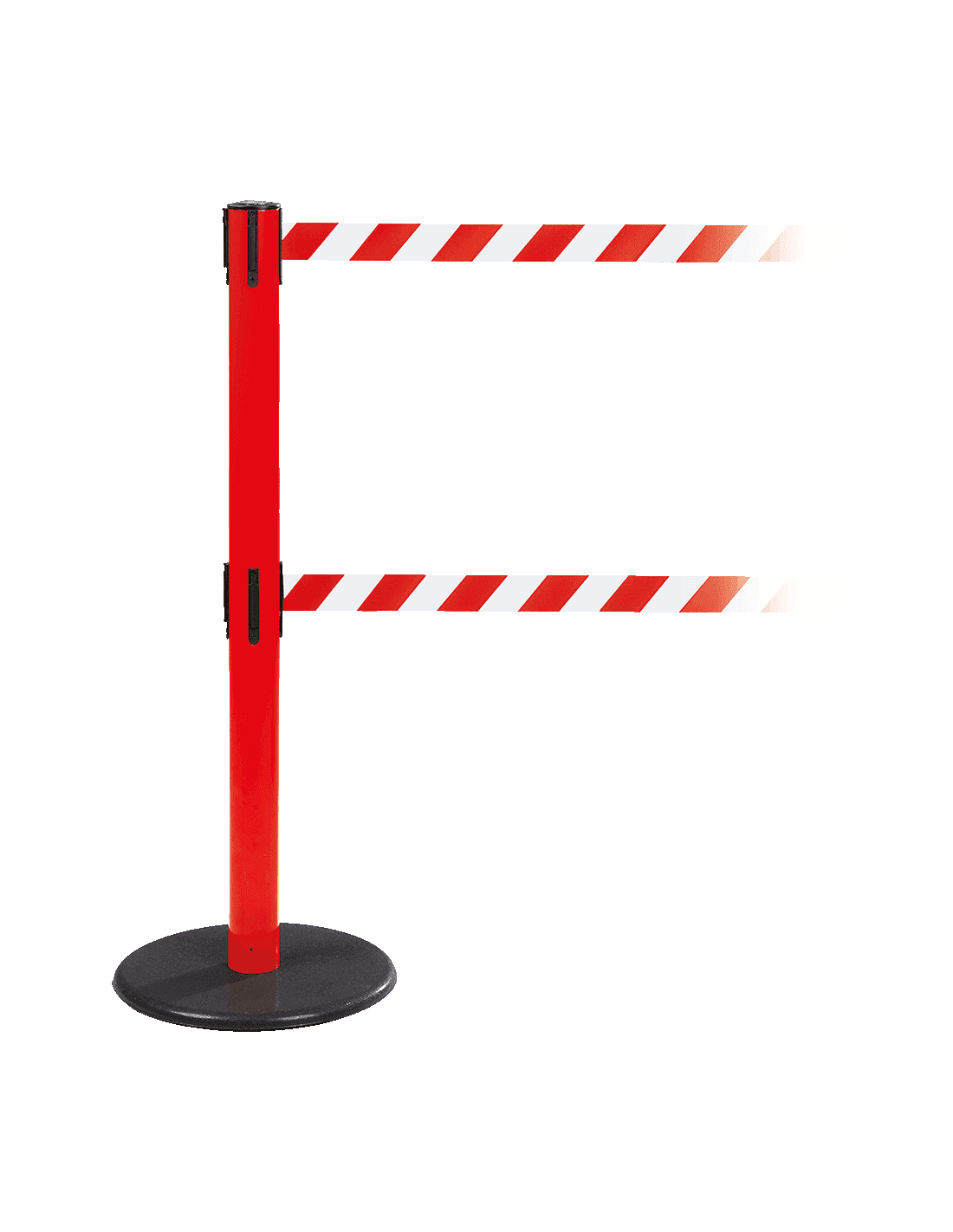 De Afzetpaal met dubbel trekband, rood wit is een ideale afzetpaal voor binnengebruik. Deze afzetpaal is gemaakt van metalen materiaal en wordt geleverd inclusief twee trekbanden. Zo kun je gemakkelijk een afzetting creëren die je ook kunt openen en dichtmaken met het trekband. Verder is het meegeleverde trekband 50 mm breed en 4 meter lang.