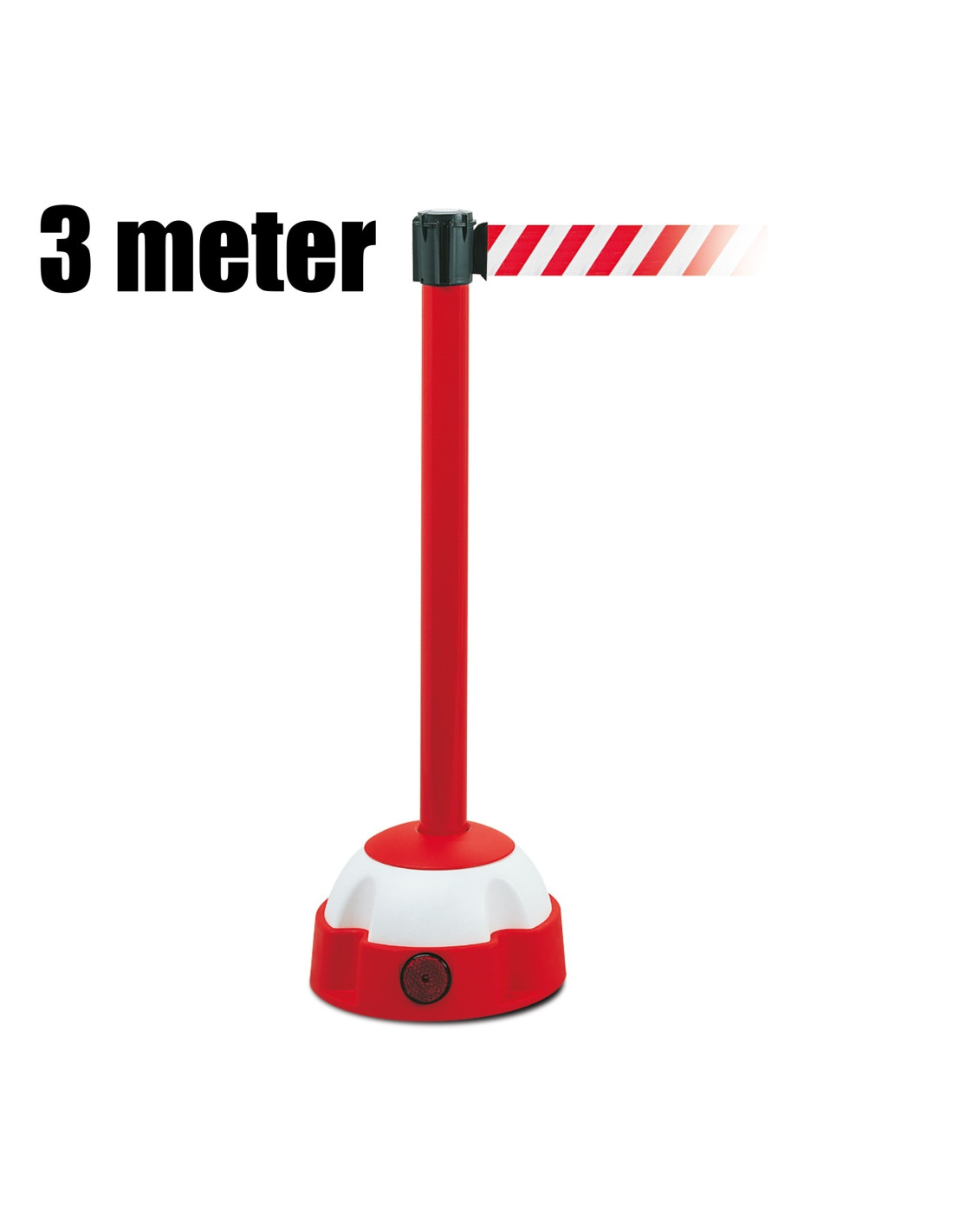 - Uitgerust met 3 meter lang wit/rood afzetlint voor hoge zichtbaarheid