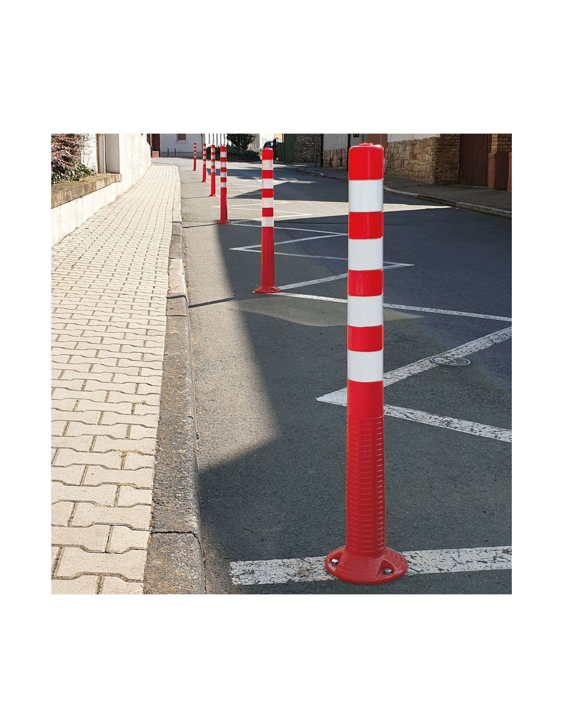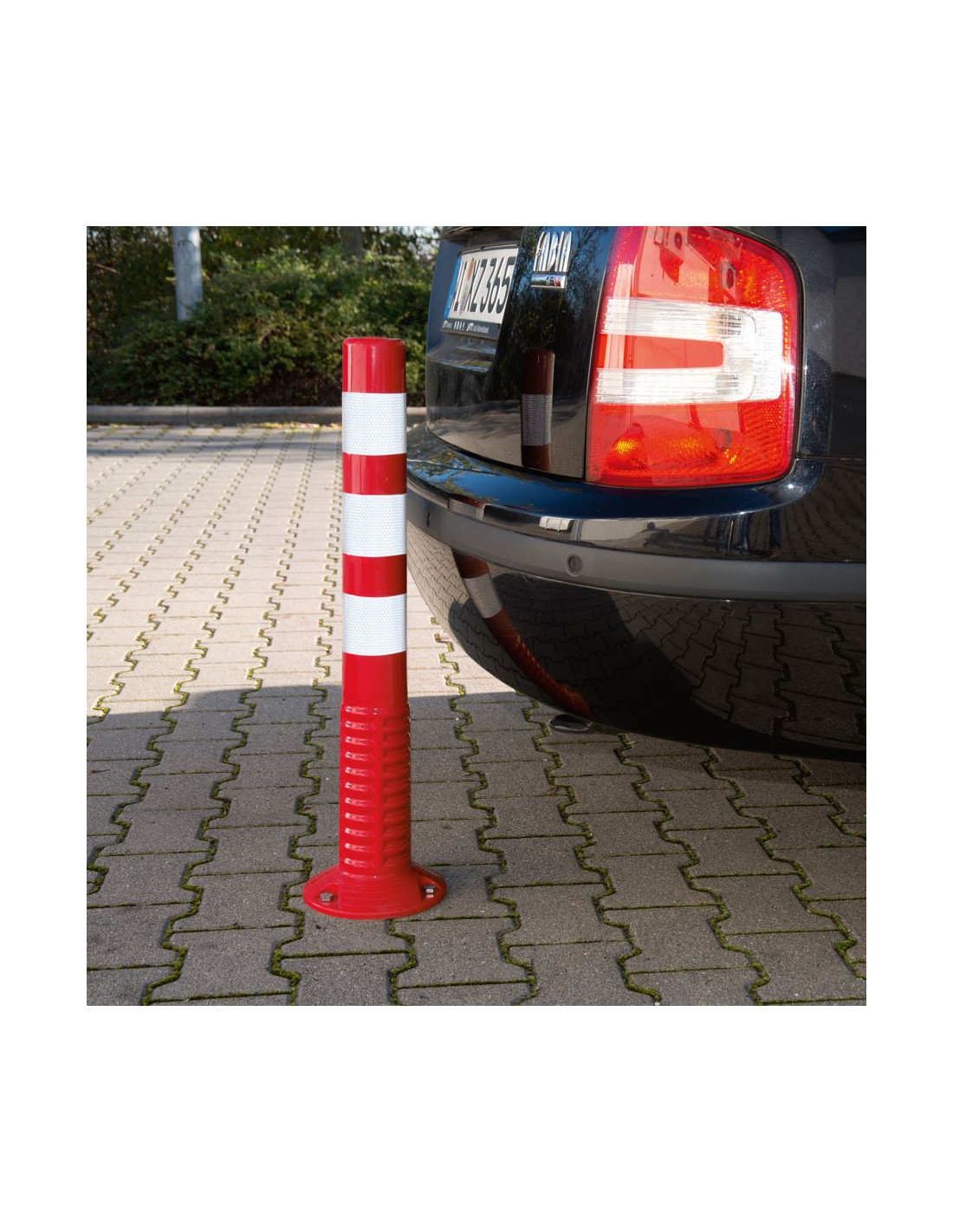 - Flexibele afzetpaal met geïntegreerde voet voor bevestiging op de grond