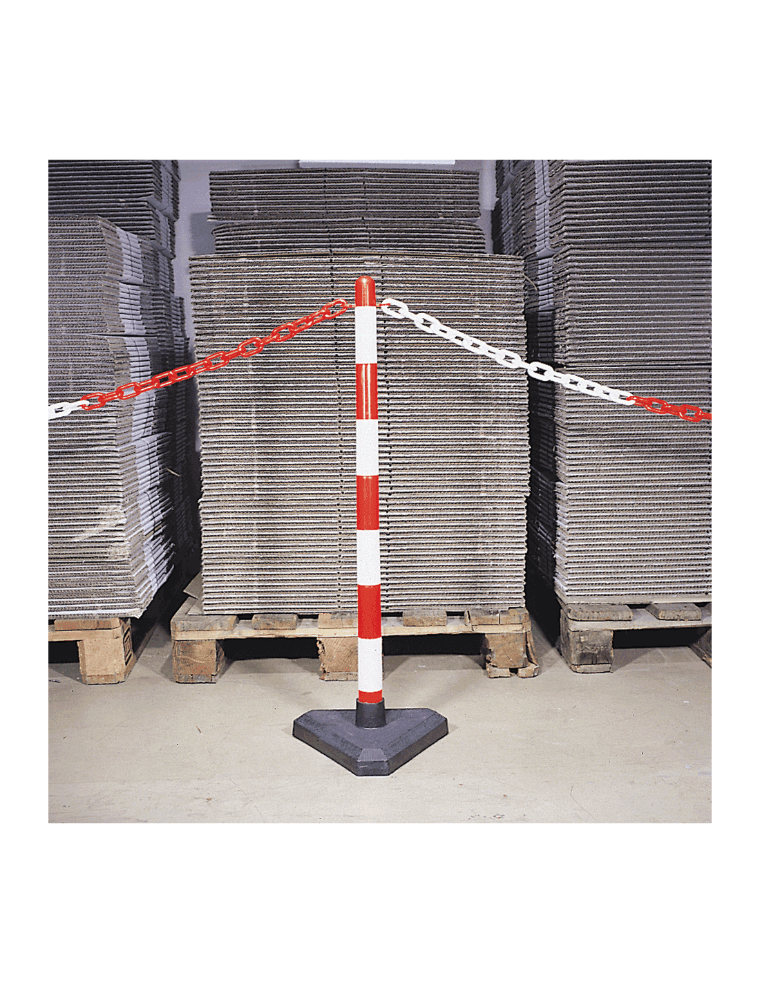 De Mobiele afzetpaal voor binnen, rood wit is ideaal om te gebruiken in omgevingen binnen. Deze afzetpaal kun je gemakkelijk verplaatsen en beschikt over 4 kettingogen. Je kunt de paal in verschillende hoogtes verkrijgen: 900 mm en 1200 mm. Verder wordt deze mobiele afzetpaal per stuk geleverd.