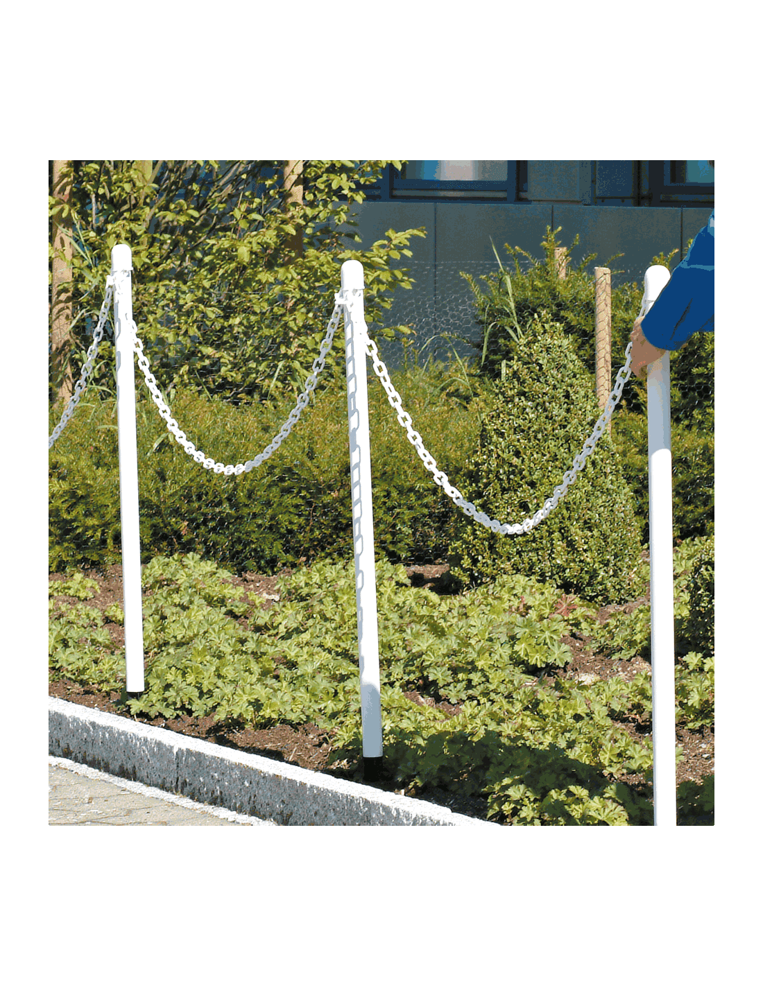 De kettingpaal voor buiten met pin, wit is een ideale mobiele afzetpaal voor onverharde ondergronden in de buitenomgeving. Je kunt deze afzetpaal namelijk buiten gebruiken en de paal is makkelijk te verplaatsen vanwege het lage gewicht. Je kunt deze paal met behulp van het insteekpunt aan de onderkant gemakkelijk in de grond plaatsen. Deze kettingpaal wordt geleverd exclusief afzetketting.