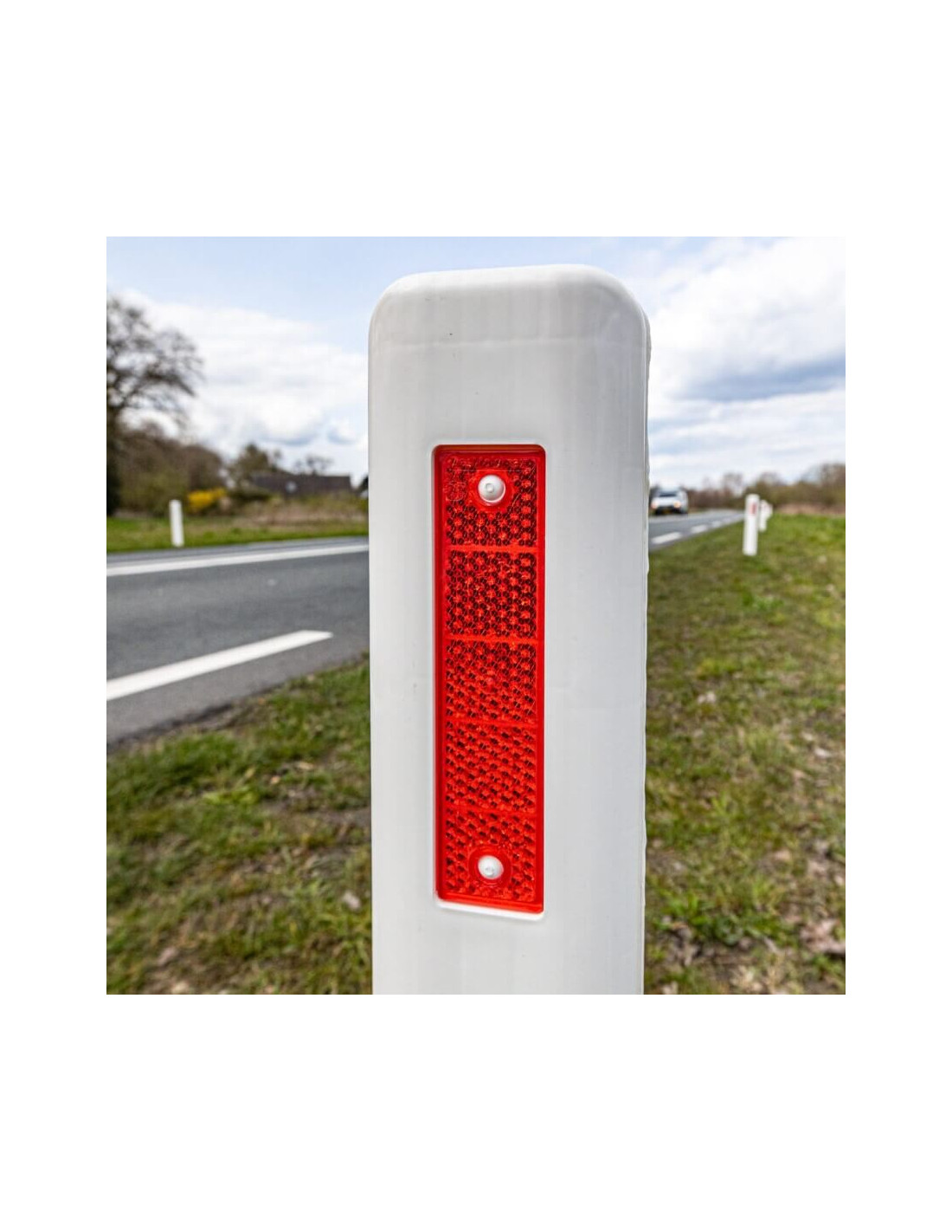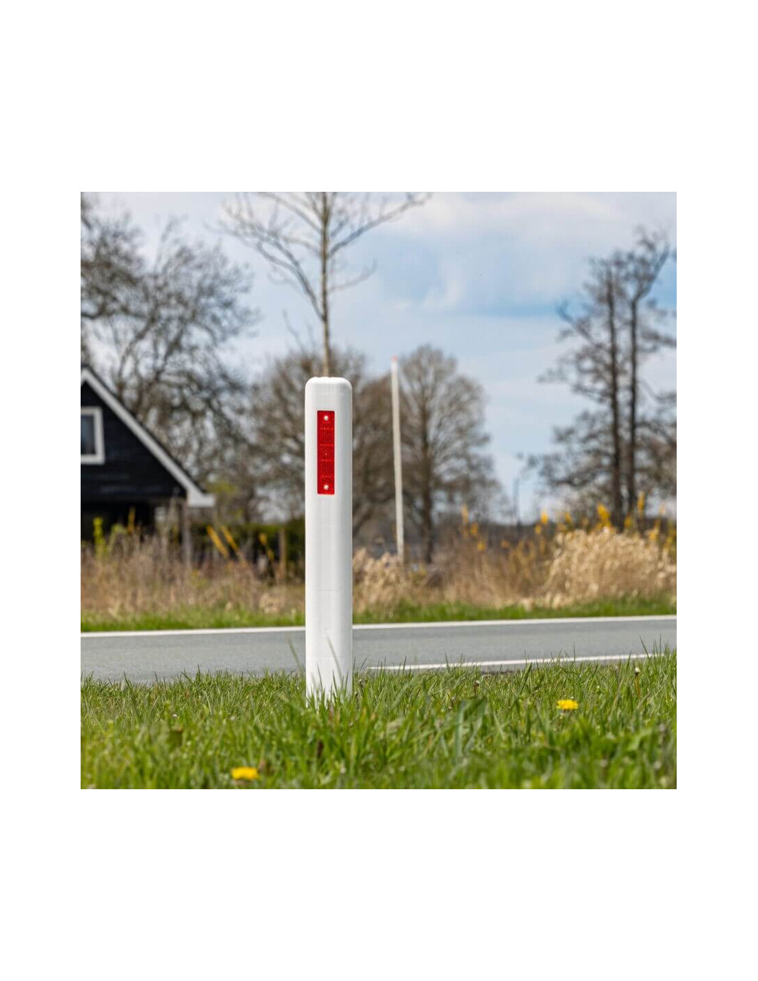 Deze kunststof bermpaal is het reflectorpaaltje voor duidelijke signalisatie langs de wegen. Door zijn speciale kartelige vorm is de bermpaal eenvoudig in de grond te slaan. Het materiaal van de bermpaal bestaat uit wit, stevig kunststof. Daarbij zijn er meerdere rechte vlakken aanwezig op de paal om toebehoren vast te zetten. Hierdoor heeft u keuze waar toebehoren worden geplaatst. Door zijn gladde oppervlak heeft het een goede weerstand tegen de weerelementen en een lange levensduur. De paal is zo ontworpen dat hij bij een aanrijding eenvoudig breekt en is daardoor extra veilig voor de bestuurder waarmee het in botsing komt. Verder moet dit reflectorpaaltje ervoor zorgen dat mensen in het donker bij weinig licht eenvoudig de weg van de berm kunnen onderscheiden.