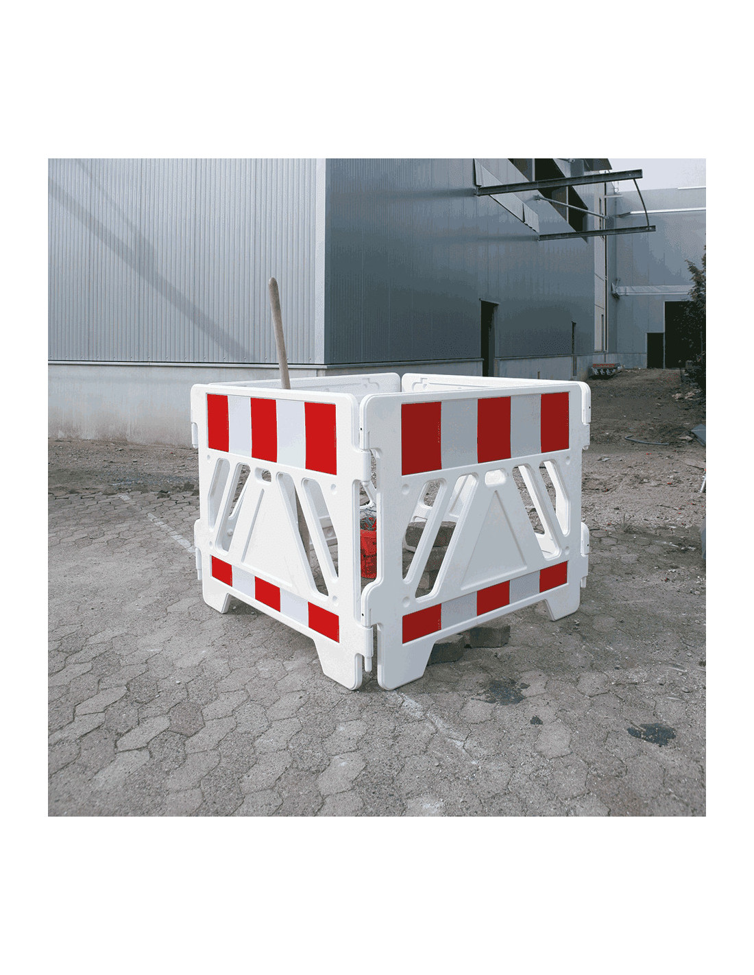 Die makkelijk en snel in gebruik genomen kan worden. Door de opvallende rode en witte kleuren zal deze goed opvallen. Handig voor het afzetten van kleine werkzaamheden. Formaat: 1250 x 1050 x 1250 mm.