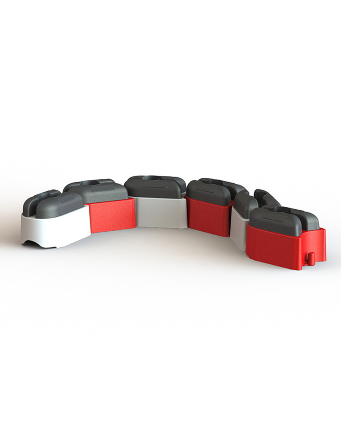 Verder beschikt de Road Rock over een haak- en staartverbinding. Deze maakt het mogelijk een doorlopende barrier te creëren. Een holte in het midden van de Road Rock maakt het mogelijk een twist-to-lock cilinder te bevestigen. Je kunt dit verzwaringsblok bestellen in een rode of witte kleur.