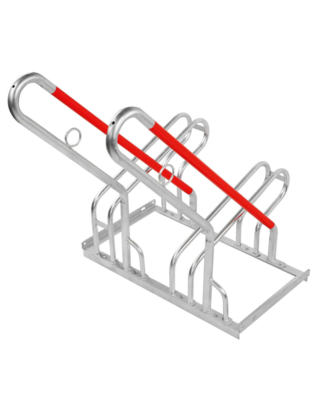 Dankzij het ruimtebesparende ontwerp, met afwisselende lage en hoge instellingen en een hoogteverschil van 110 mm, kunt u eenvoudig meerdere fietsen veilig stallen. De geïntegreerde stalen ringen maken het eenvoudig om fietssloten te bevestigen, waardoor uw fiets extra beveiligd is. Bovendien is het rek uitbreidbaar en voorbereid voor rijverbinding, wat een eindeloze montage mogelijk maakt. Het is geschikt voor fietsen met bandbreedtes tot 64 mm en wordt gedemonteerd geleverd met al het benodigde montagemateriaal en een gedetailleerde handleiding.