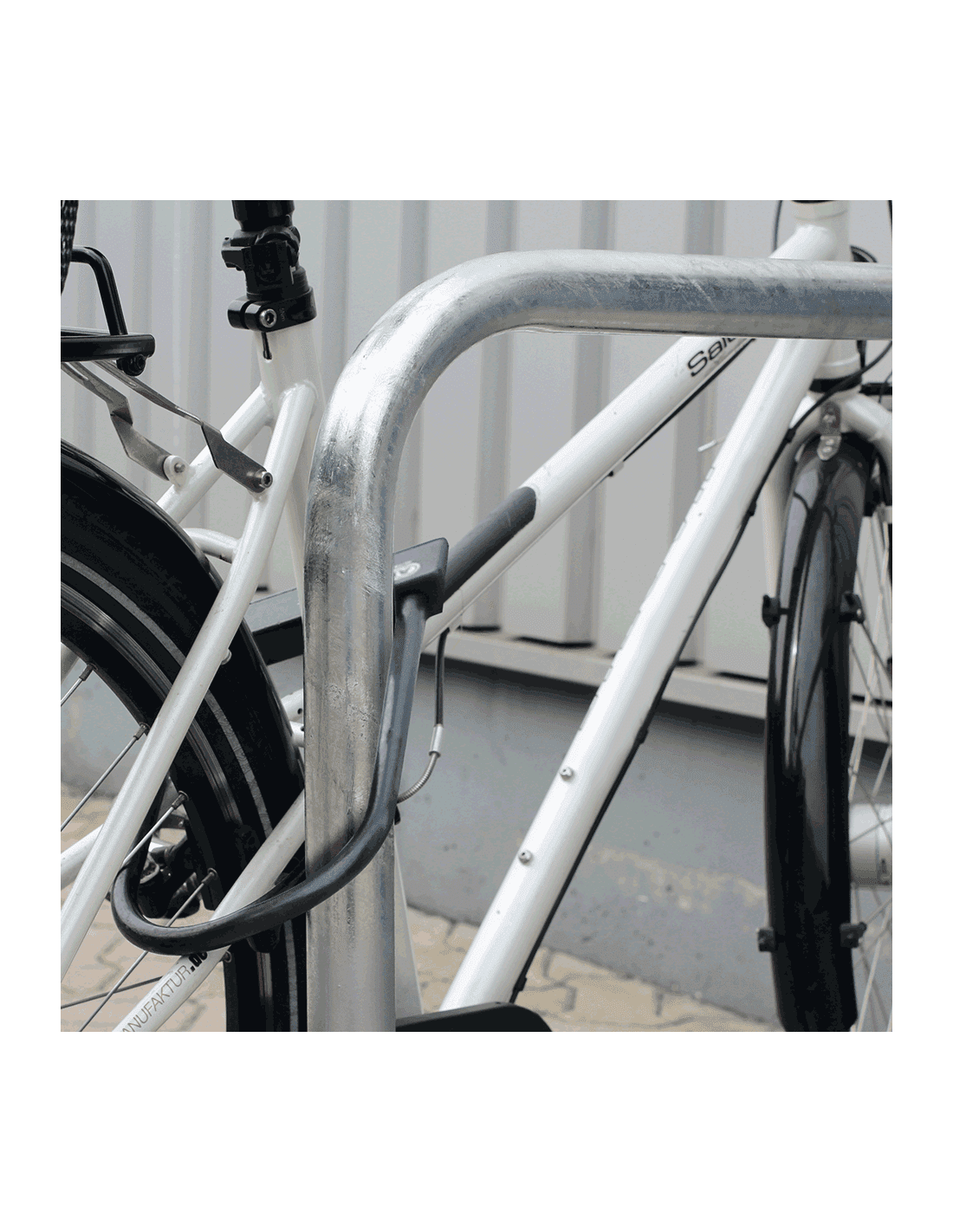 Met een hoogte van 350 mm biedt de tussenbeugel voldoende ruimte om fietsen veilig en stabiel te plaatsen. De fietsbeugel is gemaakt van thermisch verzinkt staal, wat zorgt voor duurzaamheid en bescherming tegen roest en corrosie. Het materiaal is stevig en bestand tegen de dagelijkse belasting.