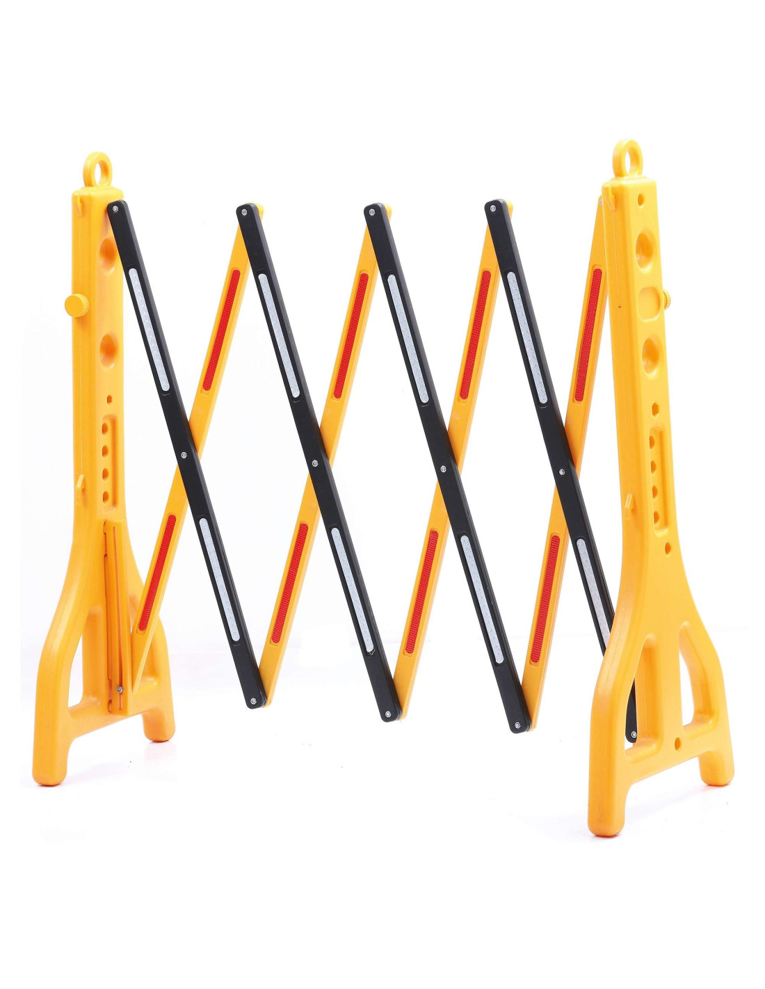 De stevige kunststof constructie is bestand tegen dagelijks gebruik en kan gevuld worden met zand of water voor extra stabiliteit. Rode en witte reflectoren verbeteren de zichtbaarheid, zelfs bij slechte lichtomstandigheden. Na gebruik schuif je het hek compact in tot slechts 300 mm breedte, wat zorgt voor een efficiënte opslag.