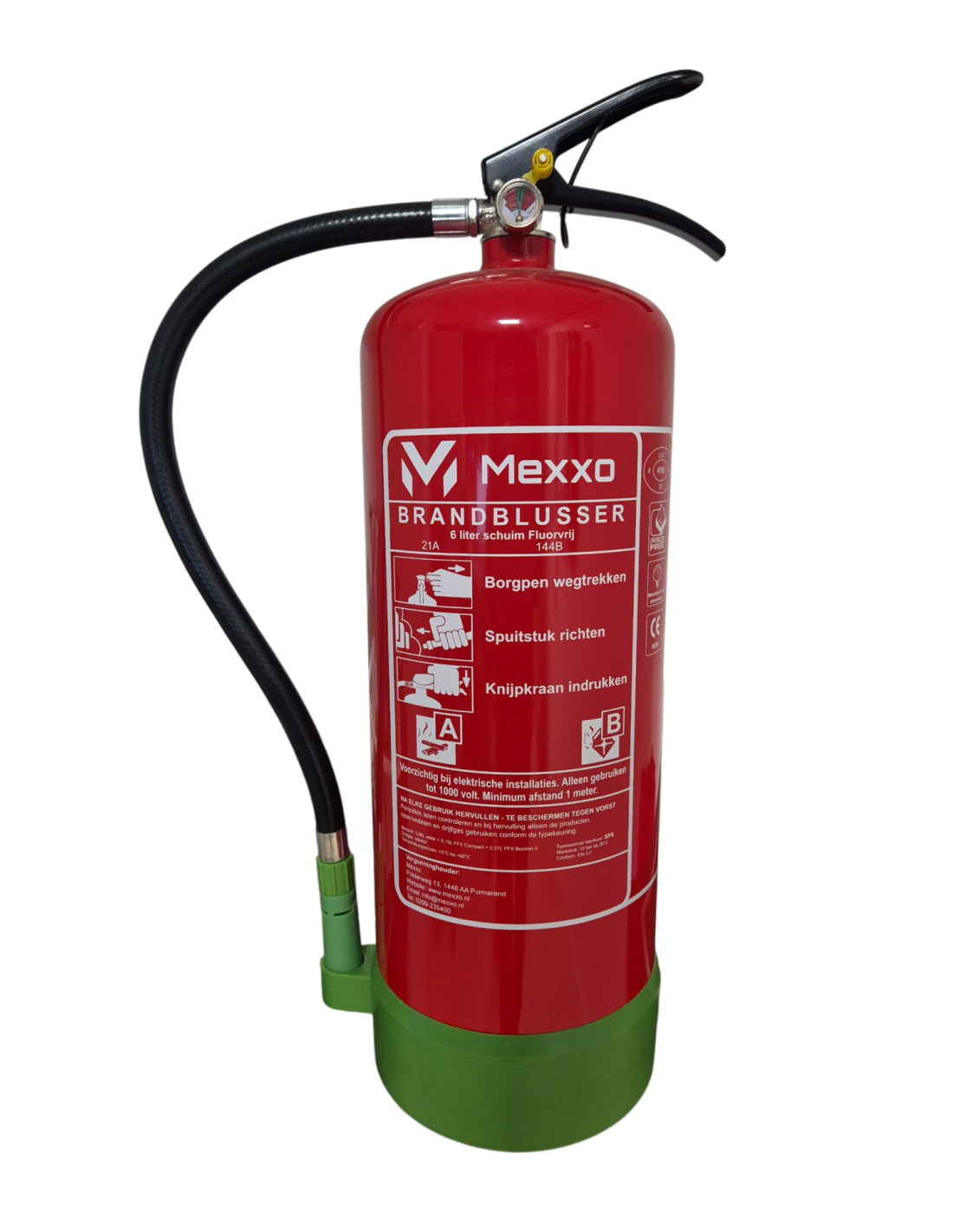 Belangrijkste kenmerken Mexxo - Schuimblusser - AB - PFAS/Fluor Vrij inclusief keuringssticker en wandbeugel