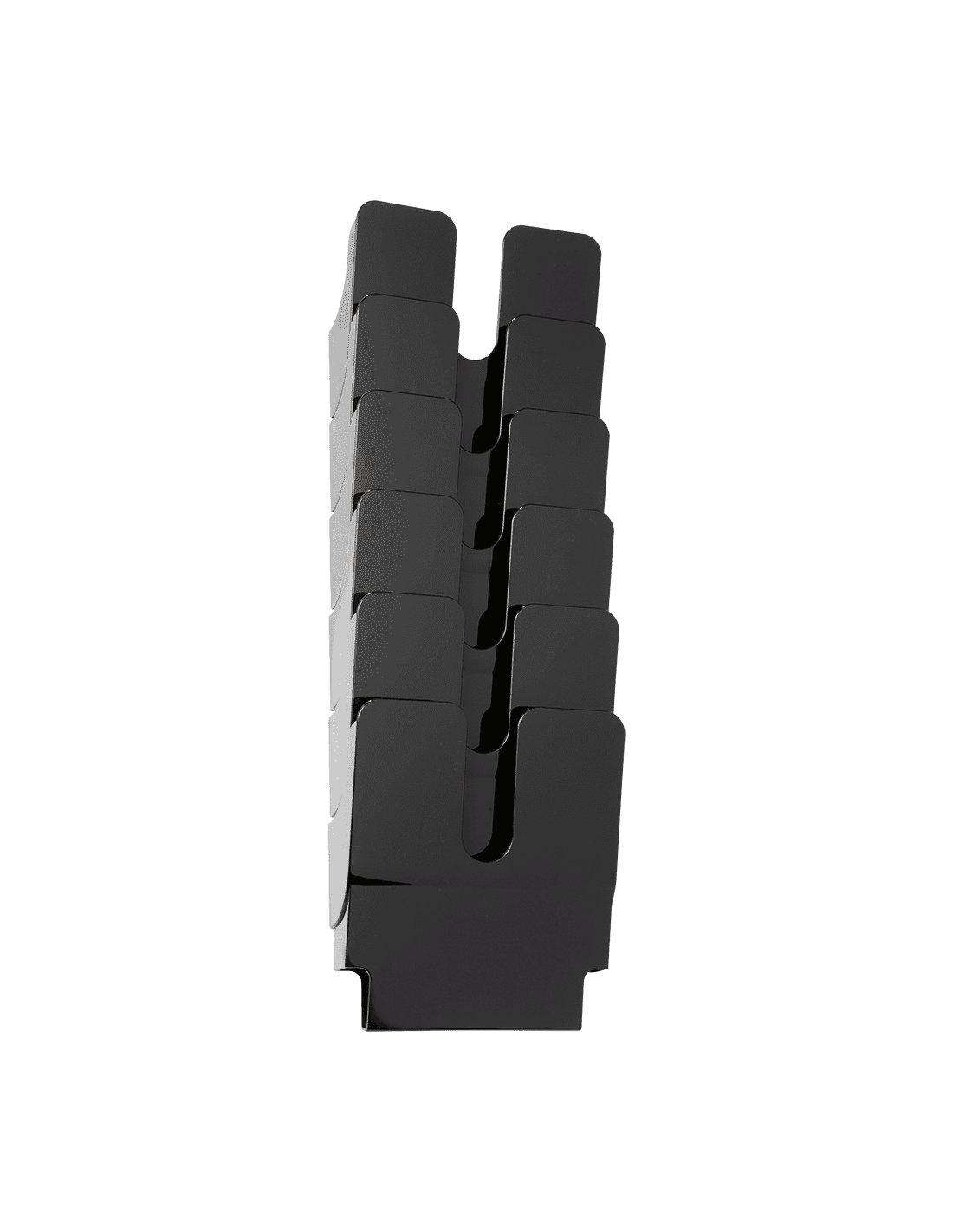 De Flexiplus 6 is vervaardigd uit stevig en duurzaam polystyreen, wat zorgt voor een lange levensduur en een professionele uitstraling. Het elegante zwarte design past perfect in elke omgeving, of het nu in een kantoor, wachtruimte of showroom is. Met afmetingen van 340 x 520 x 105 mm biedt deze brochuredispenser voldoende ruimte voor al uw documentatiebehoeften.