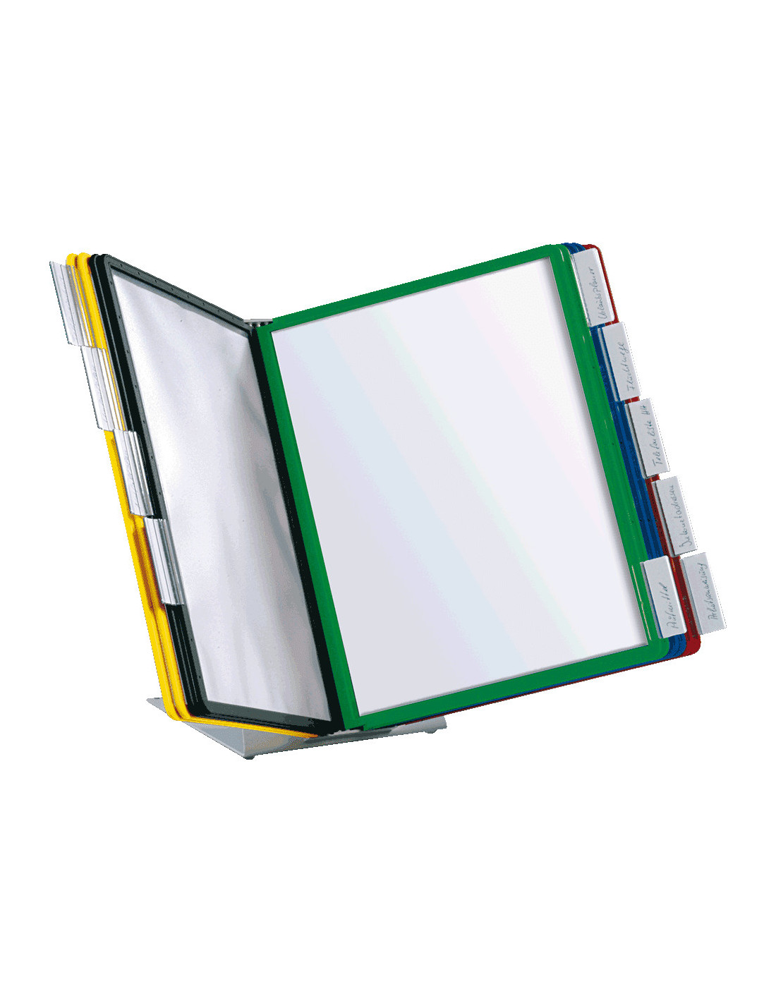 Voor het opslaan van belangrijke documenten kunt u de DURABLE VARIO lijstensysteem tafel 20, lijsten van polypropyleen gebruiken. Deze documenthouder is verkrijgbaar in verschillende kleuren en afmetingen. Documenthouders zijn verkrijgbaar in het aluminium en kunststof.