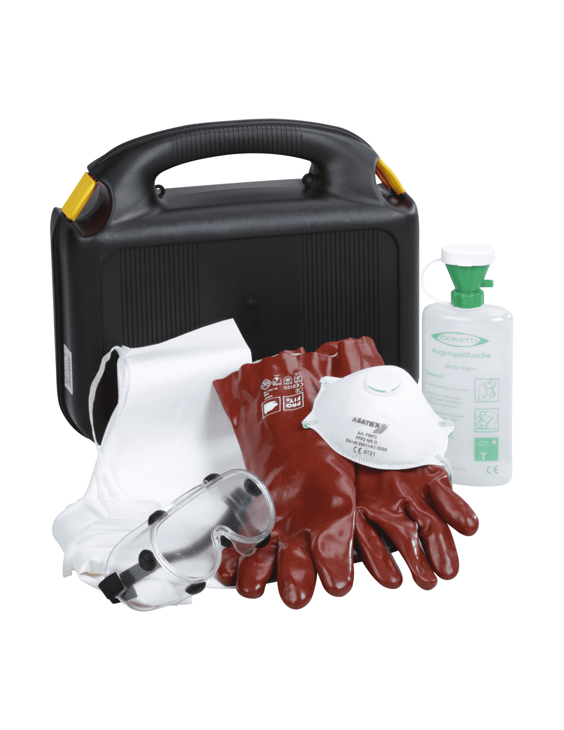 - Inclusief FFP2 masker, veiligheidsbril, veiligheidshandschoenen, veiligheidsschort en oogspoeling