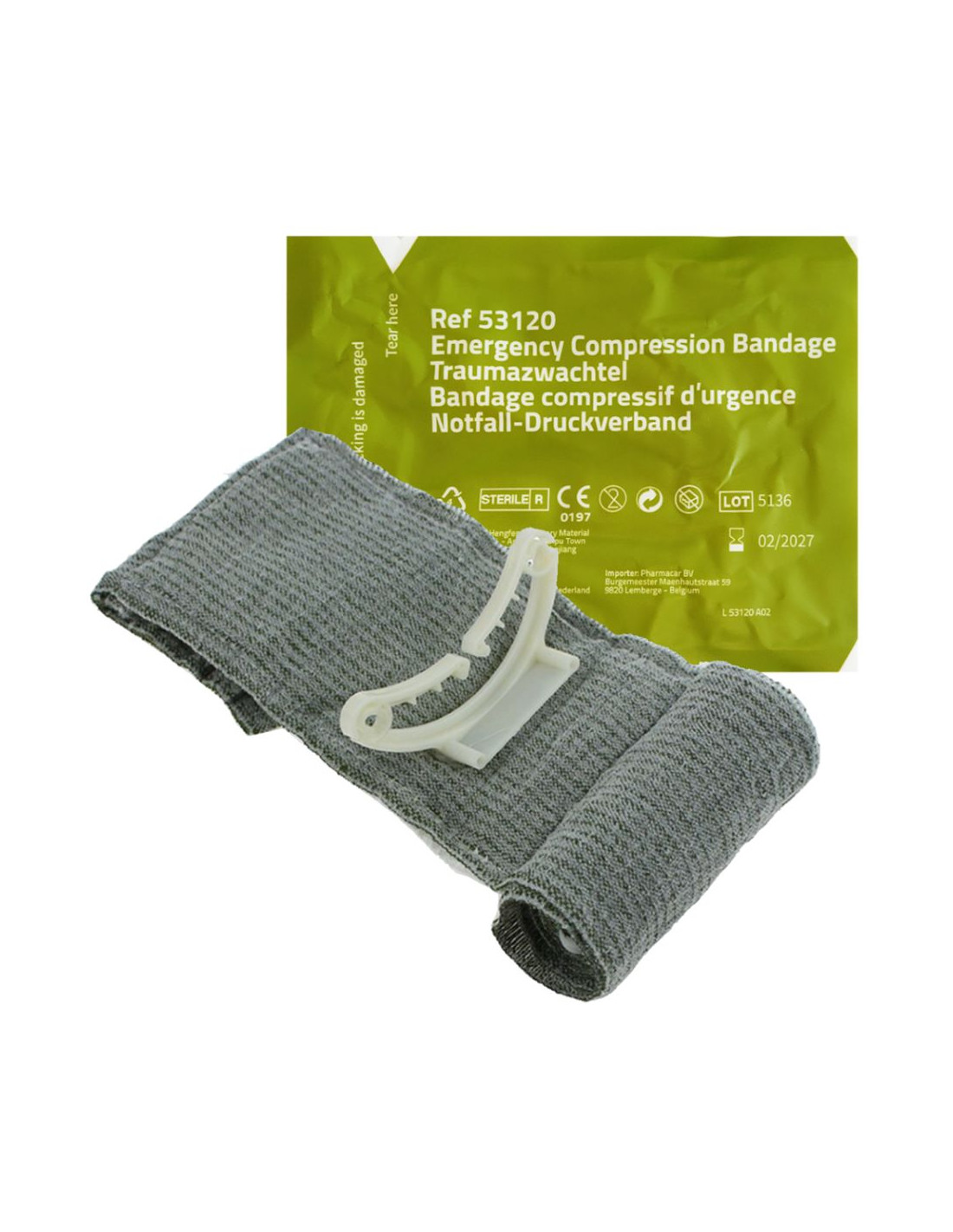 De Traumazwachtel met clip - 10 cm is een krachtig verband voor het stoppen van ernstige bloedingen. Dit Israëlisch snelverband, ook bekend als Emergency Bandage, is ontworpen om zowel interne als externe bloedingen effectief te stelpen. Met een lengte van 4,5 meter en een wondkussen van 18 x 10 cm, biedt het een all-in-one oplossing voor zware verwondingen. Het verband is voorzien van een drukklem, waarmee je eenvoudig druk op de wond kunt uitoefenen voor snelle hulp bij traumatische ongevallen.