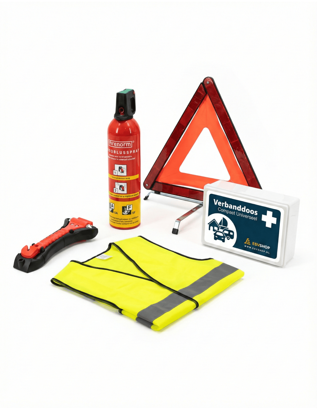 Compleet noodpakket voor in de auto, ideaal bij pech, een ongeval of onverwachte situaties onderweg