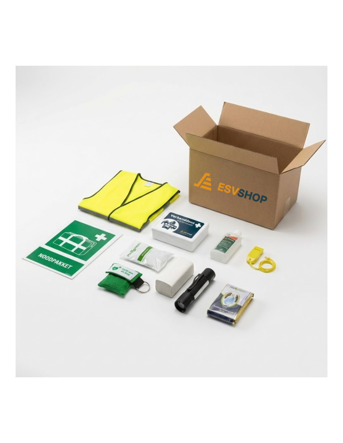 - Compleet Noodpakket Overheid Basis met verlichting, EHBO, hygiëne en zichtbaarheid