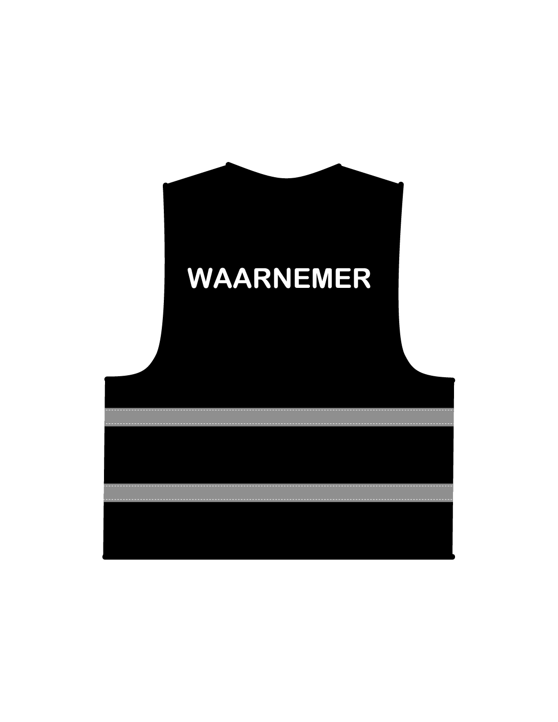 Daarnaast hebben de hesjes reflecterende strepen, zodat u ook in het donker goed opvalt en zich veilig kunt bewegen. Verder is het Waarnemer hesje zwart gemaakt van 100% polyester.