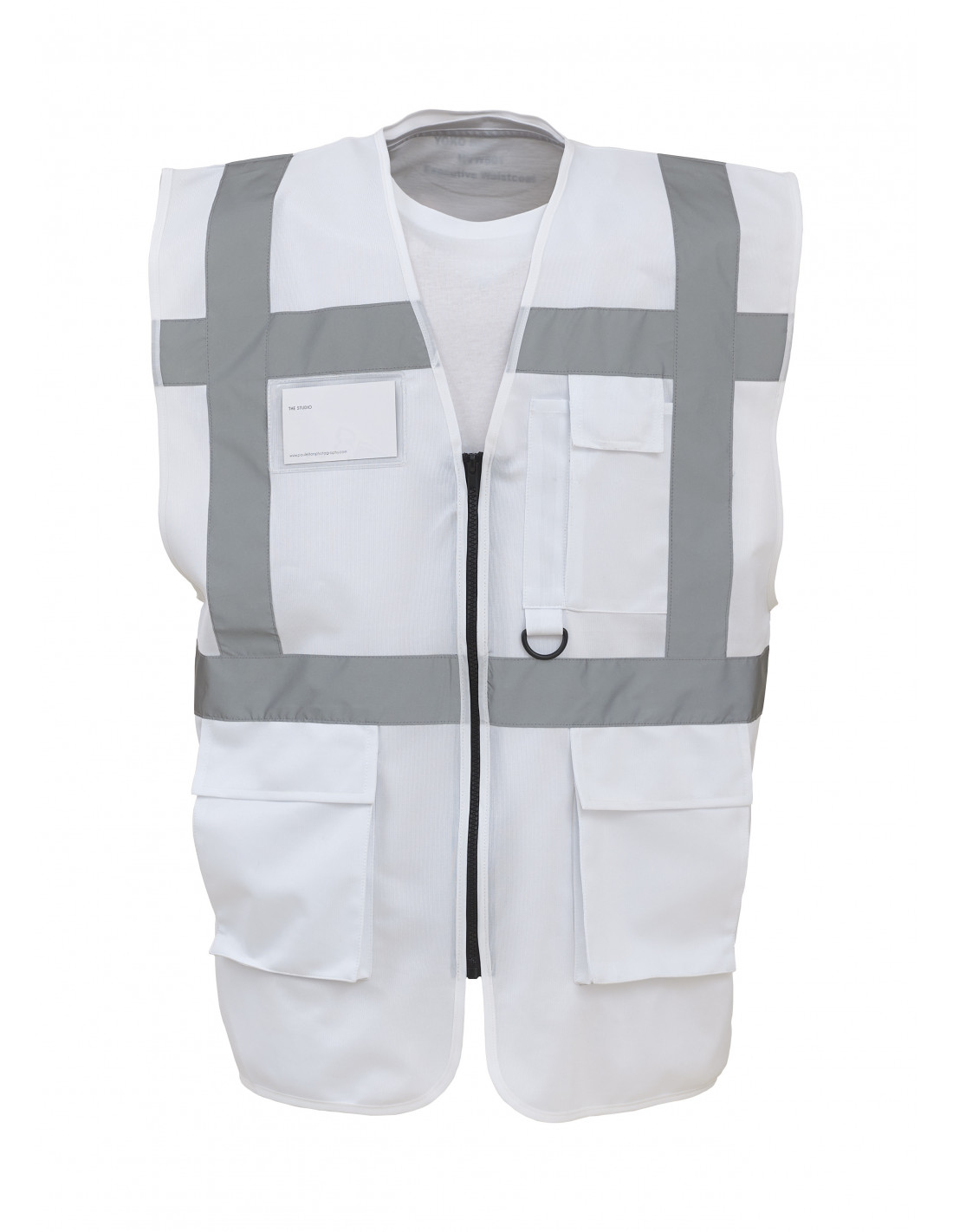 De gele en oranje veiligheidshesjes zijn conform EN ISO 20471 C2, dit geeft aan dat de hesjes aan eisen voor zichtbaarheid voldoen. Kort gezegd met deze hesjes weet u zeker dat u in het donker goed opvalt. Het hesje heeft een tailleomtrek van 120/125 cm. Verder heeft het hesje de tekst executive erop staan. Dit hesje is ideaal voor uitvoerders op een bouwplaats. Dit multifunctionele hesje heeft namelijk drie opbergzakken en een rits.