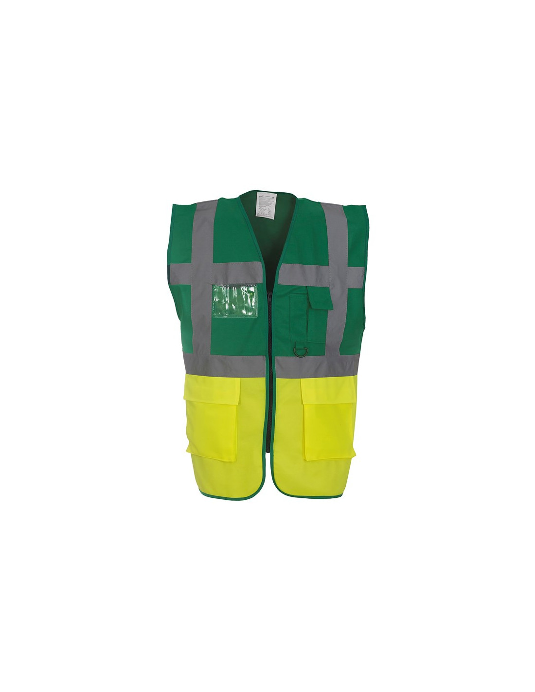 Belangrijkste kenmerken Veiligheidshesje met rits donkergroen, geel