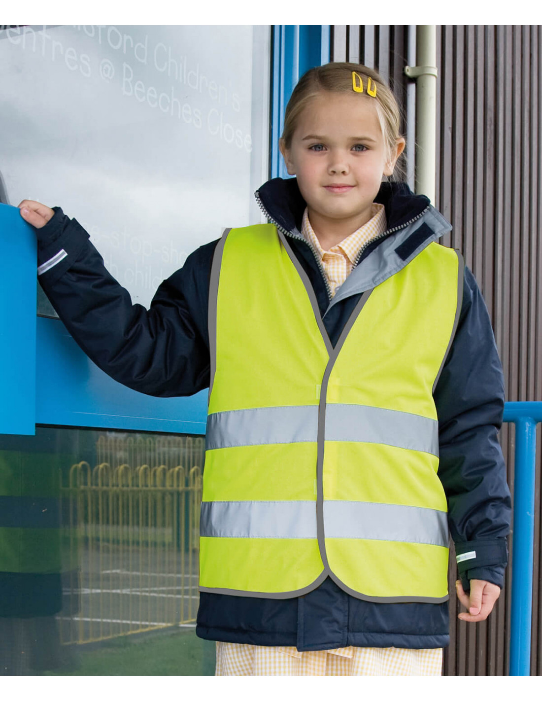 Dit veiligheidshesje voor kinderen is een licht en eenvoudig hesje die zichtbare bescherming biedt. Door de ruime pasvorm kan het over de kleding worden gedragen. Het hesje is gemaakt van polyester en de reflecterende strepen zijn 50 mm breed. Het hesje is gemaakt volgens EN 1150-89. U kunt het hesje in verschillende kleuren en formaten bestellen.