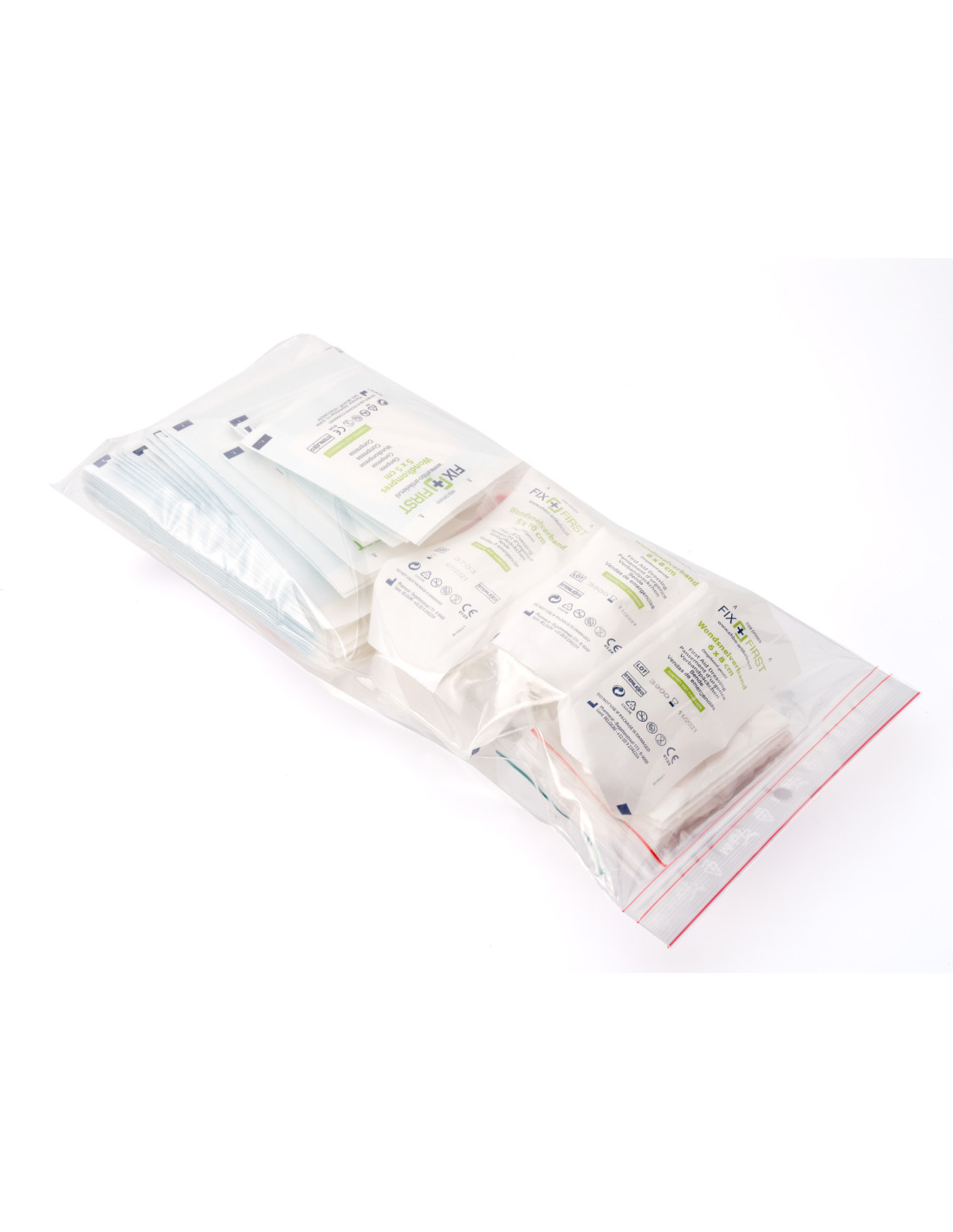 De steriele inhoud EHBO koffer A is een handige navulling voor onze EHBO koffer A. Door deze navulling te gebruiken is de steriele inhoud van deze koffer gemakkelijk weer aangevuld. De steriele inhoud wordt geleverd in een handig zakje en is geschikt voor werkomgevingen met minimaal 10 personen.