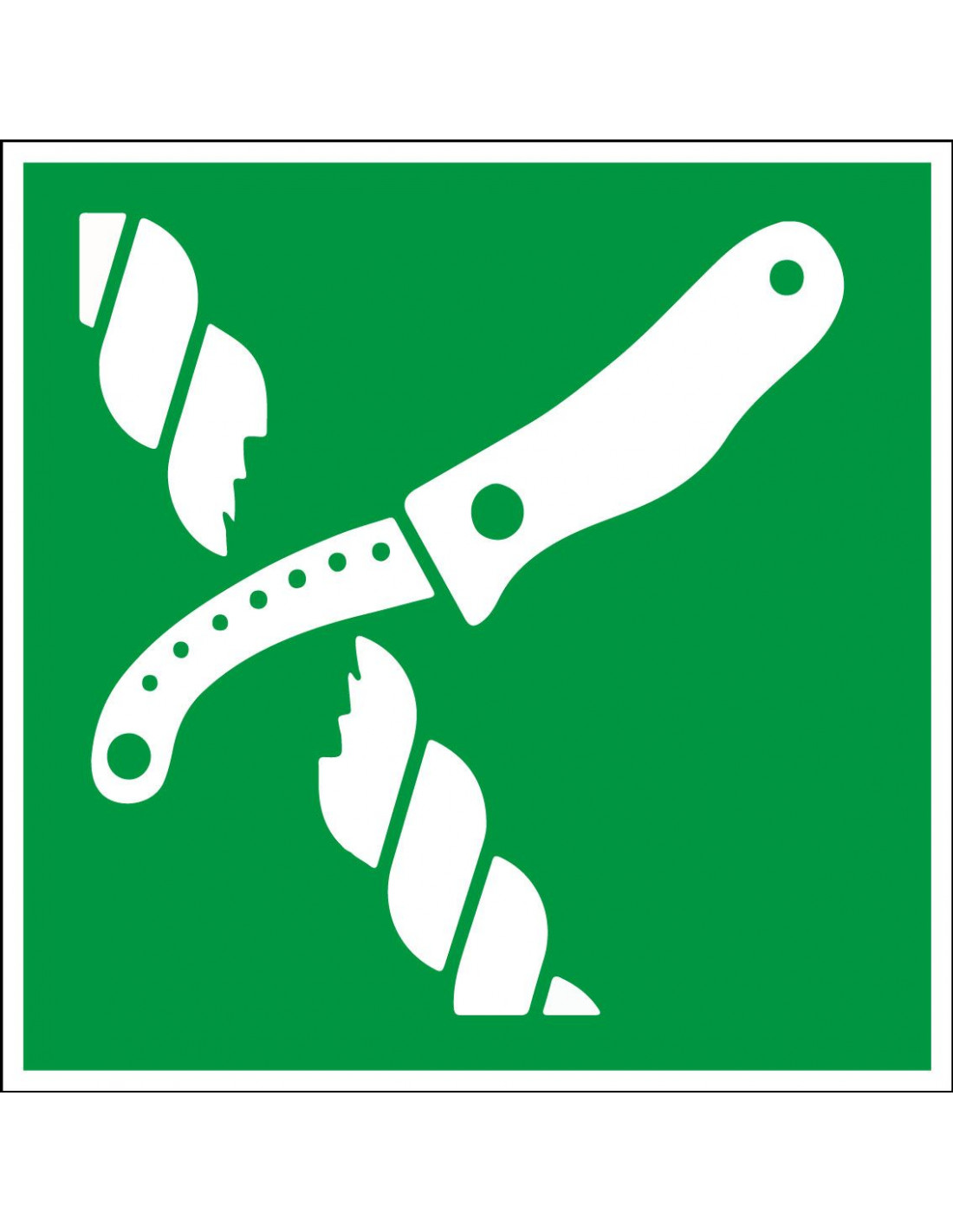 Dit mes reddingsboot bord laat zien dat er op deze plek een mes aanwezig is op een boot voor noodsituaties.