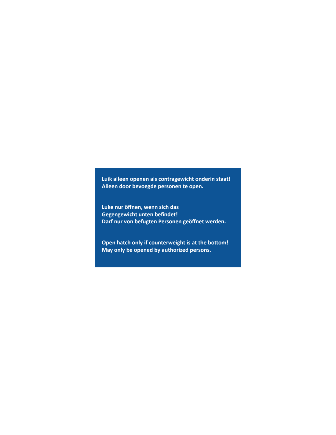 Luke nur öffnen, wenn sich das Gegengewicht unten befindet! Darf nur von befugten Personen geöffnet werden.