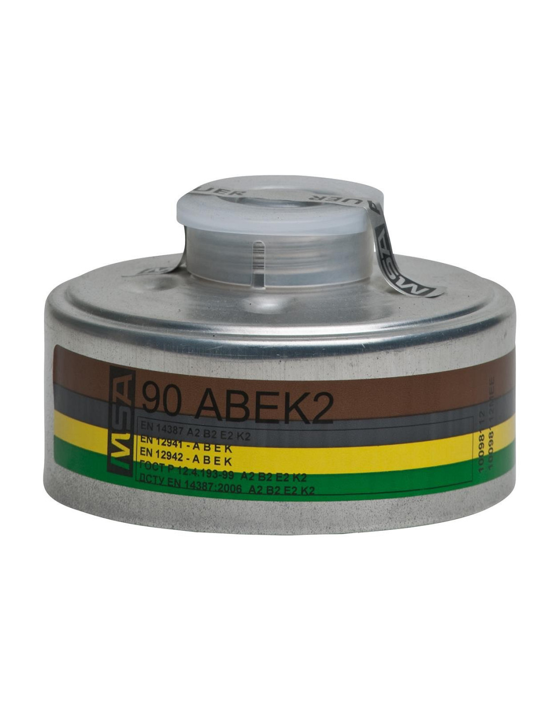 Het MSA 90 gas- en dampfilter A2B2E2K2 is ontworpen met de hoogste standaarden in ademhalingsbescherming. Met een EN 148-1 standaard schroefdraad aansluiting is dit filter eenvoudig te bevestigen aan geschikte ademhalingsapparatuur. Dit filter biedt effectieve bescherming tegen toxische gassen en dampen, waardoor het ideaal is voor diverse werkomgevingen.