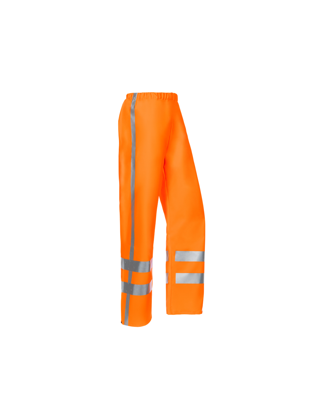Deze broek is ideaal voor slechte werkomgevingen en beschikbaar in zes maten. Vervaardigd van polyester met PU-coating en opvallend oranje met reflecterende banden, combineert deze regenbroek functionaliteit met veiligheid, essentieel voor wie ongehinderd wil werken, zelfs in de meest uitdagende weersomstandigheden. Daarnaast voldoet deze broek aan deze RWS signaleringsnormen: EN ISO 20471 : 2013 +A1 2016 / Class 1
