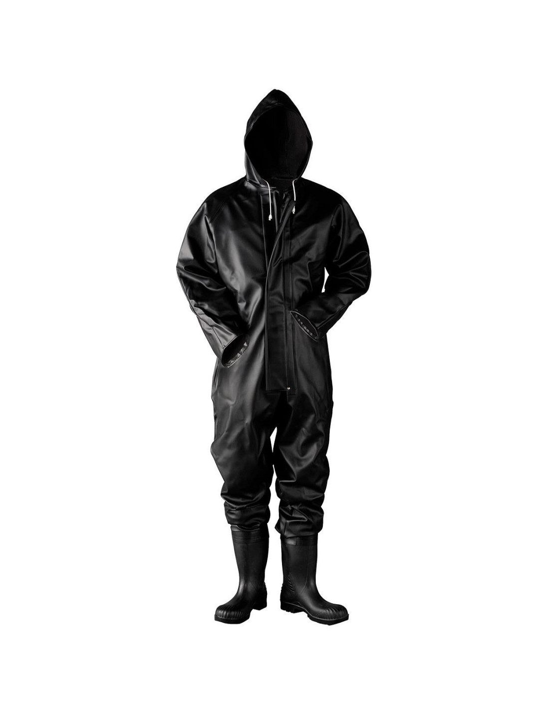 De Dolfing 432.02 riooloverall met onbeveiligde laarzen is de perfecte bescherming voor werken in riolen, slibverwerkingsinstallaties en andere vuile en natte omgevingen. De overall is gemaakt van een stevig PVC/polyester materiaal met een gewicht van 600 gr/m². Dit materiaal is waterdicht, vuilafstotend en slijtvast.