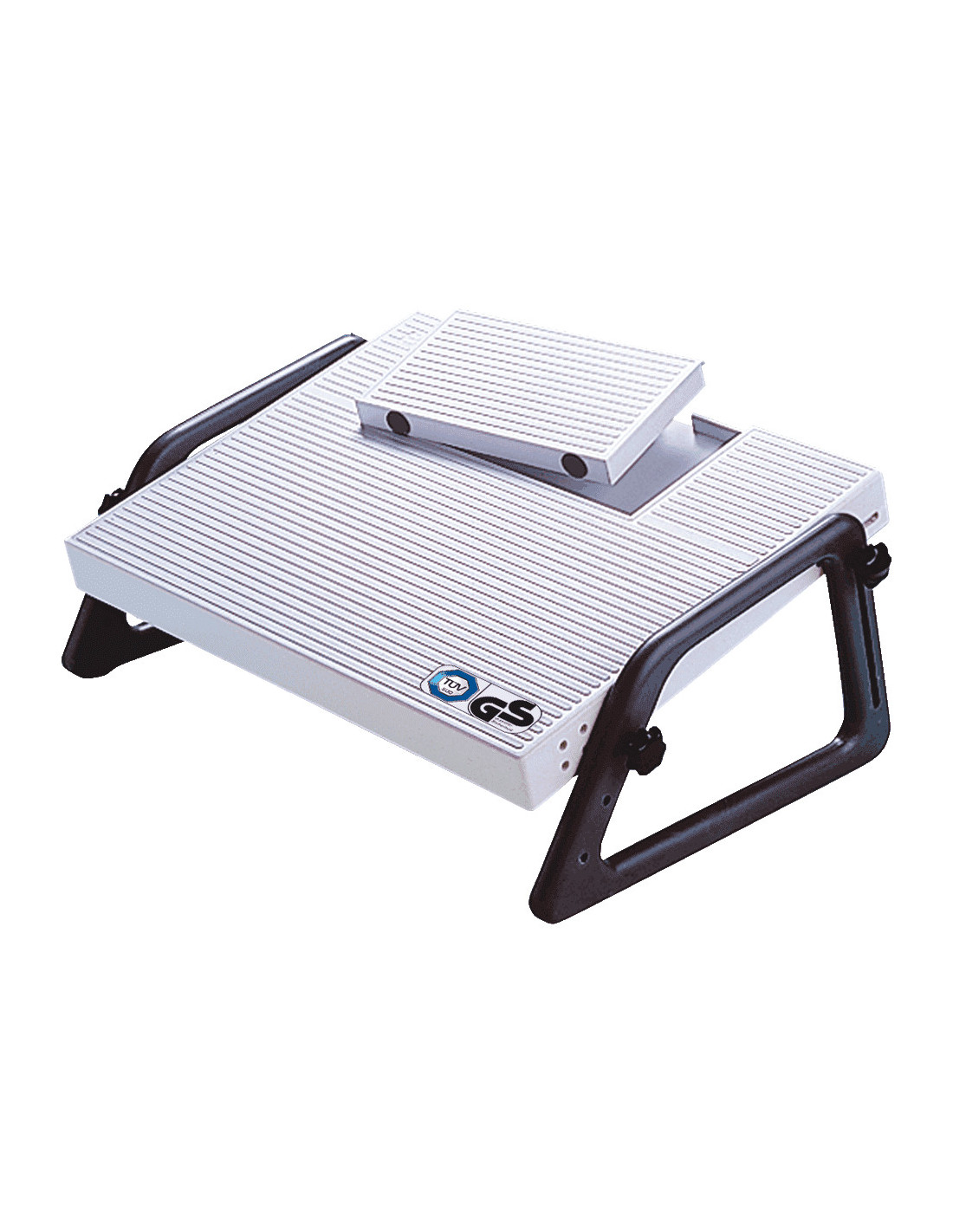 Voetsteun Relax, in hoogte verstelbaar, voor betere houding tijdens het werk, slipvast, onbreekbaar, geribt oppervlak, verstelling van 40 tot 150 mm, achter van 70 tot 210 mm, kantelverstelling, volgens DIN 4556, kleur: lichtgrijs, Materiaal: polystyreen, loopvlak: 450 x 350 mm