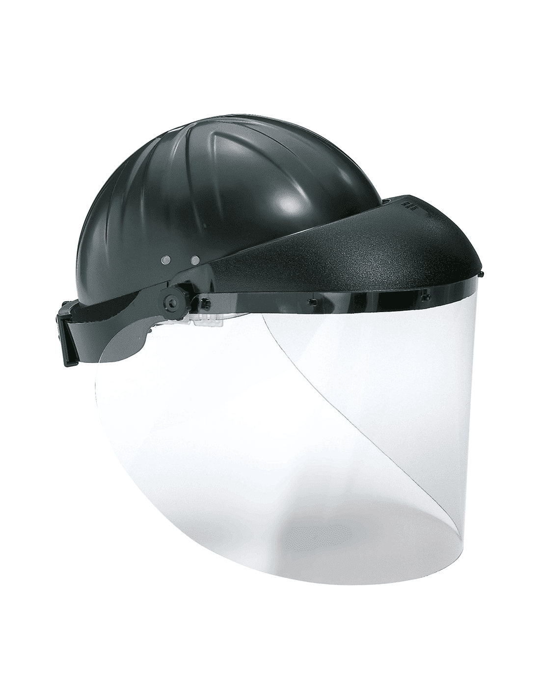 - Categorie II gelaatsscherm met geïntegreerde voorhoofdsafdekking en extra kap van slagvast polystyreen