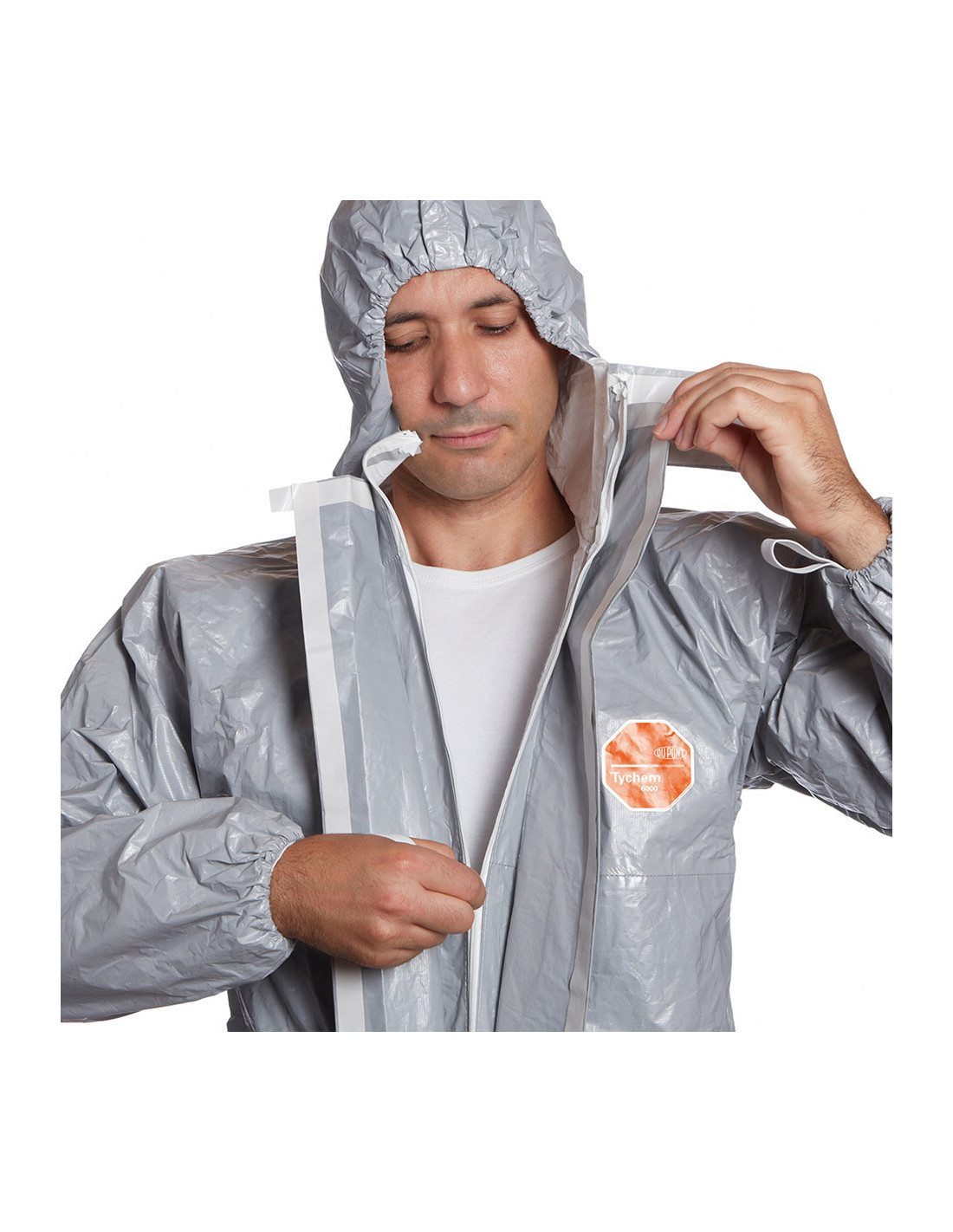 De DuPont Tychem 6000 F wegwerpoverall biedt een uitgebreide bescherming tegen verschillende risico's zoals vloeistofspatten, biologische gevaren, en radioactieve deeltjes. Met een antistatische binnenlaag, elastische banden en duimlussen voor een optimale pasvorm en gemak, garandeert deze overall comfort en veiligheid tijdens verschillende werkzaamheden.