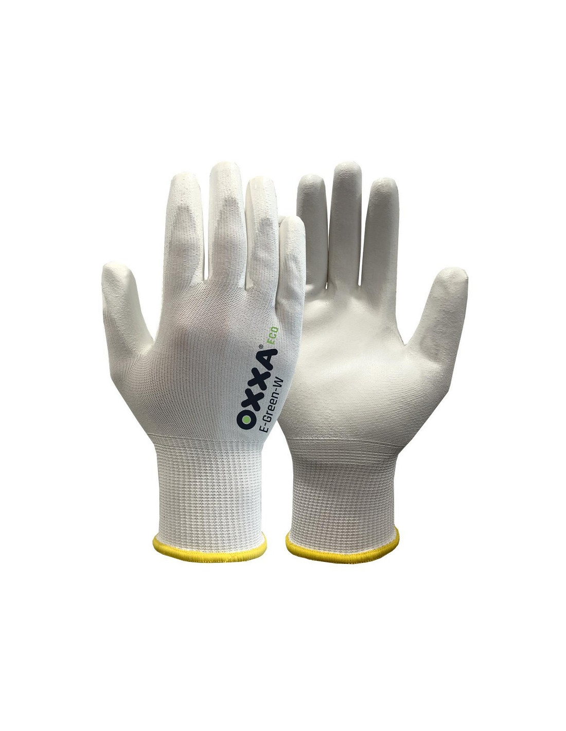 De OXXA E-Green-W 52-100 werkhandschoenen zijn gemaakt van een 85% gerecycled polyester met een Soft Polyurethaan-coating op de handpalm en de vingers. De coating zorgt voor een zeer comfortabele en vingergevoelige handschoen. De handschoen is perfect voor het in elkaar zetten van kleine onderdelen. Daarnaast is de handschoen naadloos afgewerkt en heeft een elastisch gebreid polsmanchet voor een goede pasvorm.