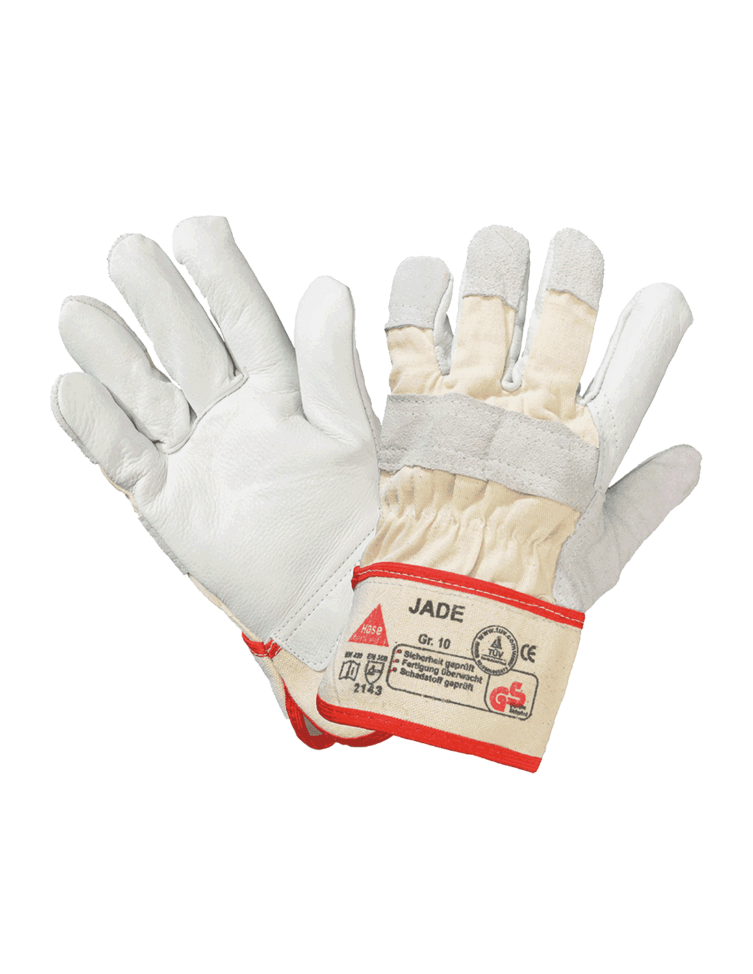 Jade Combi werkhandschoenen, categorie II, volgens EN 388 Level 3133, EN 420, voor binnen en buiten, canvas tulp, vingertop- en knokkelbescherming, compleet met dubbele stiksels, kleur: grijs, materiaal: nerfleer, gevoerd, lengte: ca. 260 mm