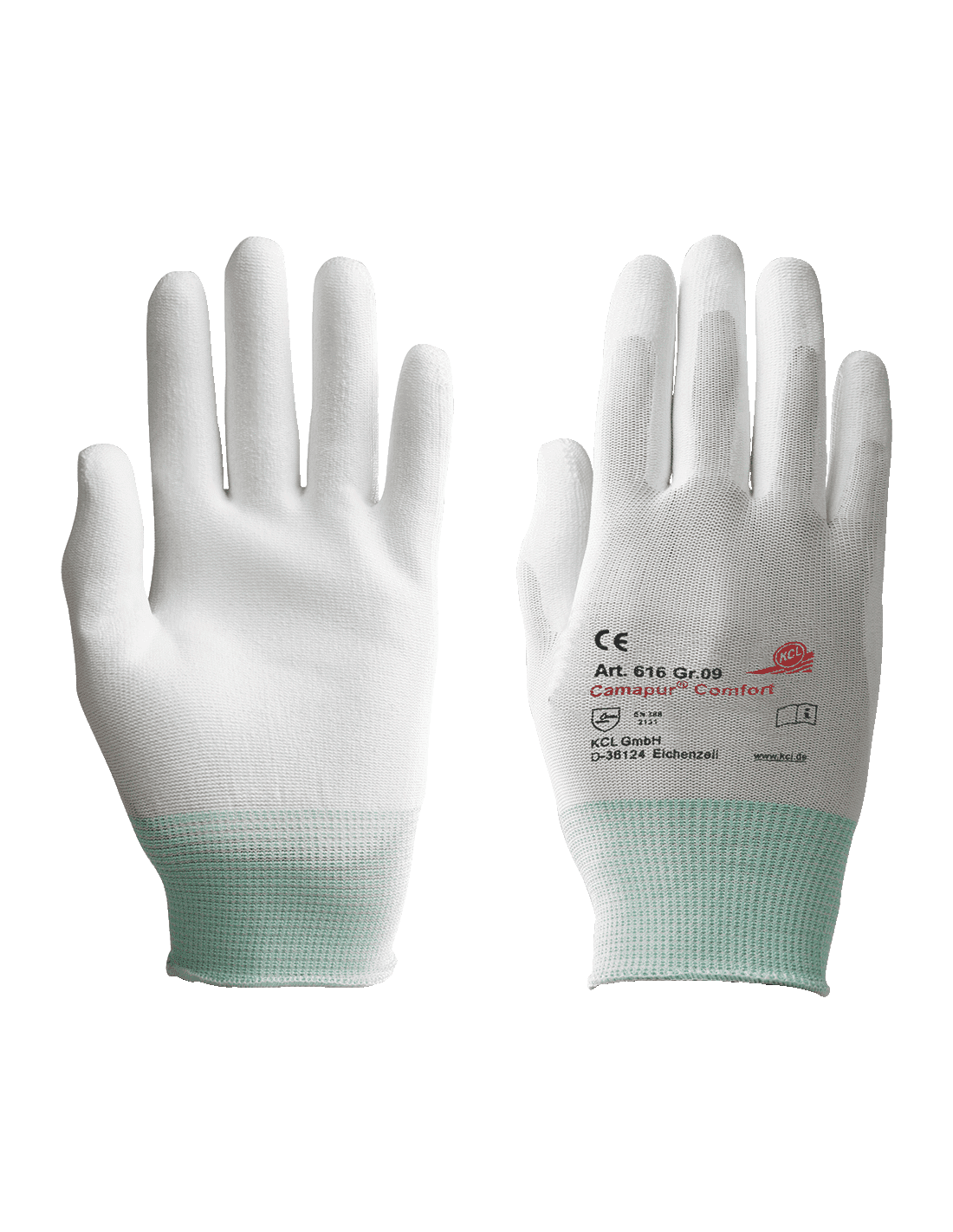 KCL beschermende handschoen Camapur® Comfort 616+, categorie II, volgens EN 388 level 3131, met gebreide manchet, uitstekende pasvorm, zeer goede gevoeligheid, zeer goede grip voor vette en olieachtige delen, hoge mechanische sterkte, ademend, kleur: wit, materiaal buitenzijde: polyamide met PU-coating op de handpalm, naadloze tricot, lengte: ca. 240 mm