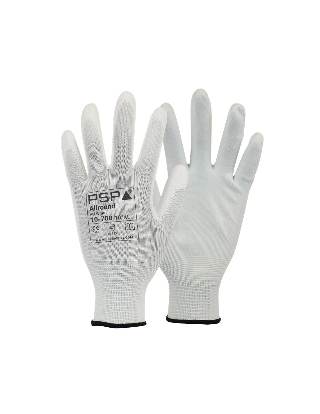 De PSP Allround PU White 10-700 is een handschoen met een 15G nylon liner met een witte PU antislip coating op de palm. Op de rug en vingers is de handschoen opengewerkt, wat zorgt voor goede ventilatie en daardoor een uitstekend draagcomfort. De open PU coating zorgt voor een goede grip met droge en olie-achtige werkzaamheden. Artikel PSP 10-700 is getest en gecertificeerd conform de Europese Verordening (EU) 2016/425 en de EN-normen EN420 / EN388:2016.