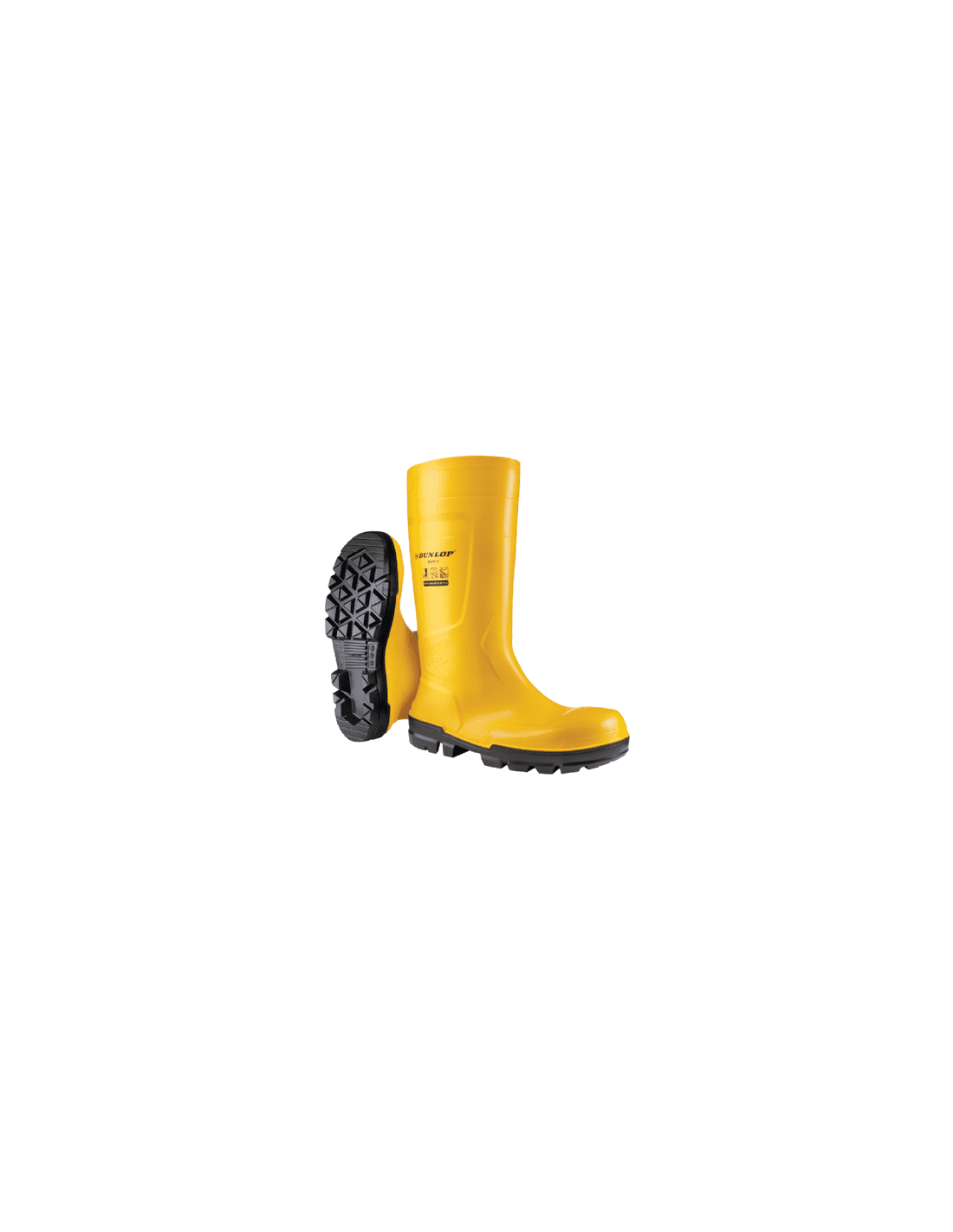 De DUNLOP Work It werklaars in opvallend geel is ontworpen om te voldoen aan de hoogste veiligheidsnormen en biedt uitstekende bescherming en comfort in zware werkomstandigheden. Deze werklaars is uitgerust met een stalen neus en stalen tussenzool, wat je voeten beschermt tegen zware impact en scherpe objecten. Het waterdichte ontwerp houdt je voeten droog, zelfs in natte en modderige omstandigheden.