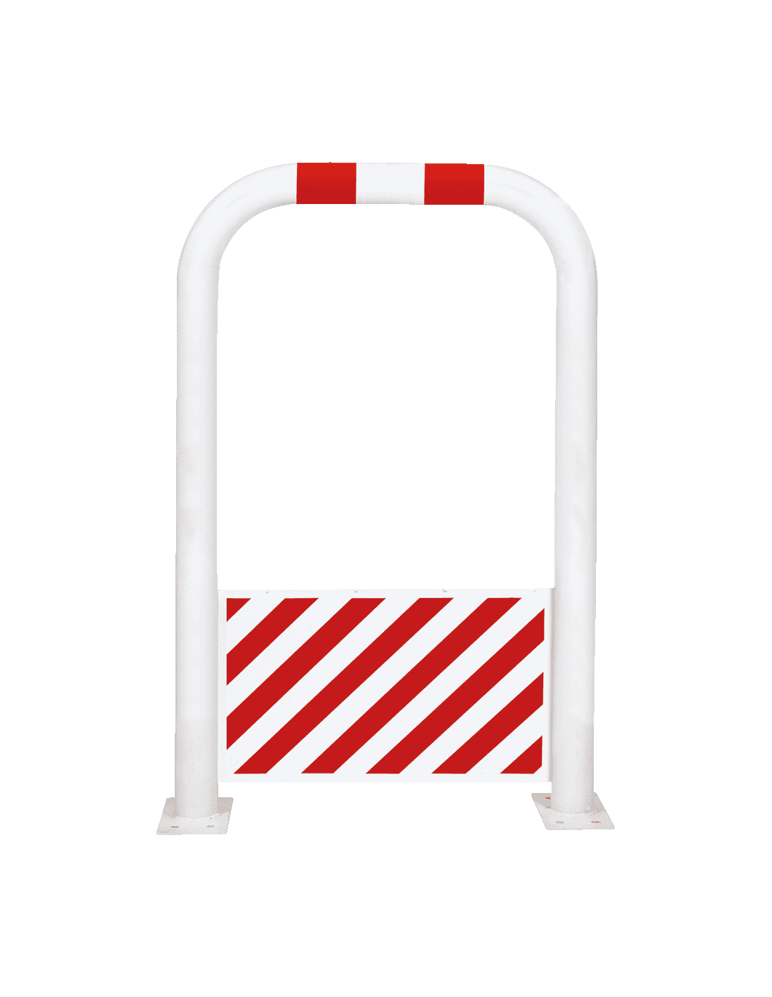 Deze beschermbeugel met beveiliging is de ideale bescherming voor kwetsbare punten in jouw magazijn of op jouw bedrijfsterrein. Deze beschermbeugel met beveiliging moet bevestigd worden op de grond vandaar dat het product is voorzien van twee stevige gelaste voetplaten met elk vier gaten. De beschermbeugels met beveiliging zijn gemaakt van thermisch verzinkt staal. Verder heeft deze beugel een hoogte van 1150 millimeter en heeft het een opvallende rood met witte kleur.