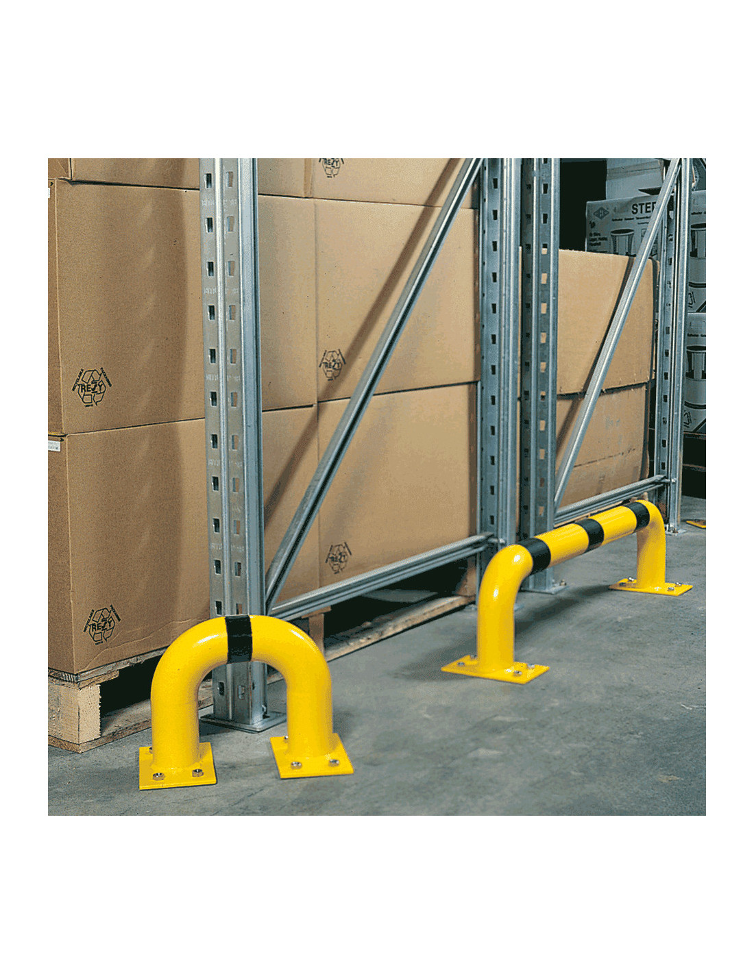 Deze beschermbeugel met voetplaat is de ideale bescherming voor kwetsbare punten in jouw magazijn of op jouw bedrijfsterrein. Deze beschermbeugel moet bevestigd worden op de grond vandaar dat het product is voorzien van twee stevige gelaste voetplaten met elk vier gaten. De beschermbeugels met voetplaat zijn gemaakt van thermisch verzinkt staal. Verder heeft deze beugel een afmeting van 300 x 250 millimeter en heeft het een opvallende geel zwarte kleur.