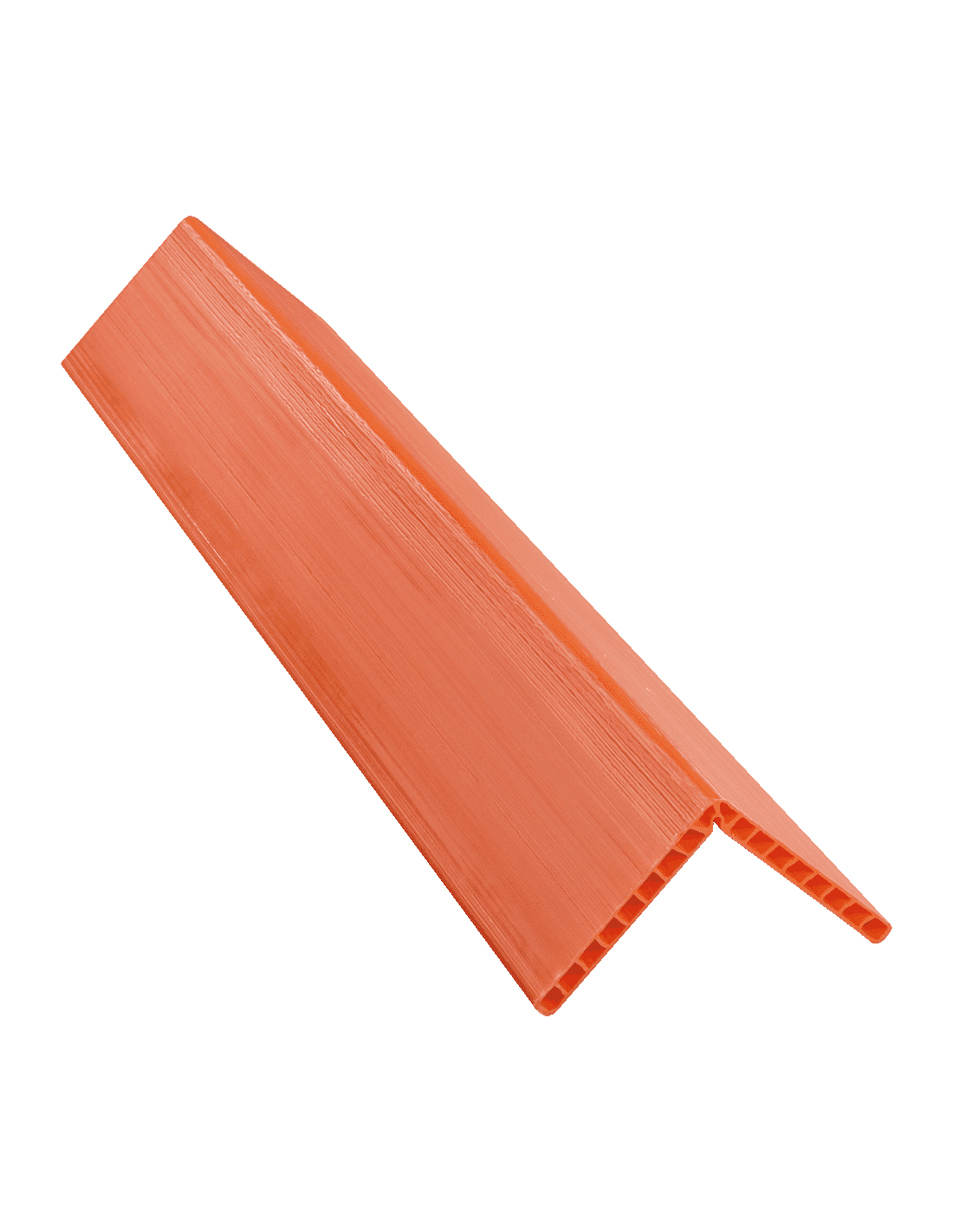 De hoekbeschermer is uitgevoerd in een opvallende oranje kleur, wat zorgt voor goede zichtbaarheid en duidelijke markering van de lading. Dit draagt bij aan de veiligheid en efficiëntie van het transportproces.
