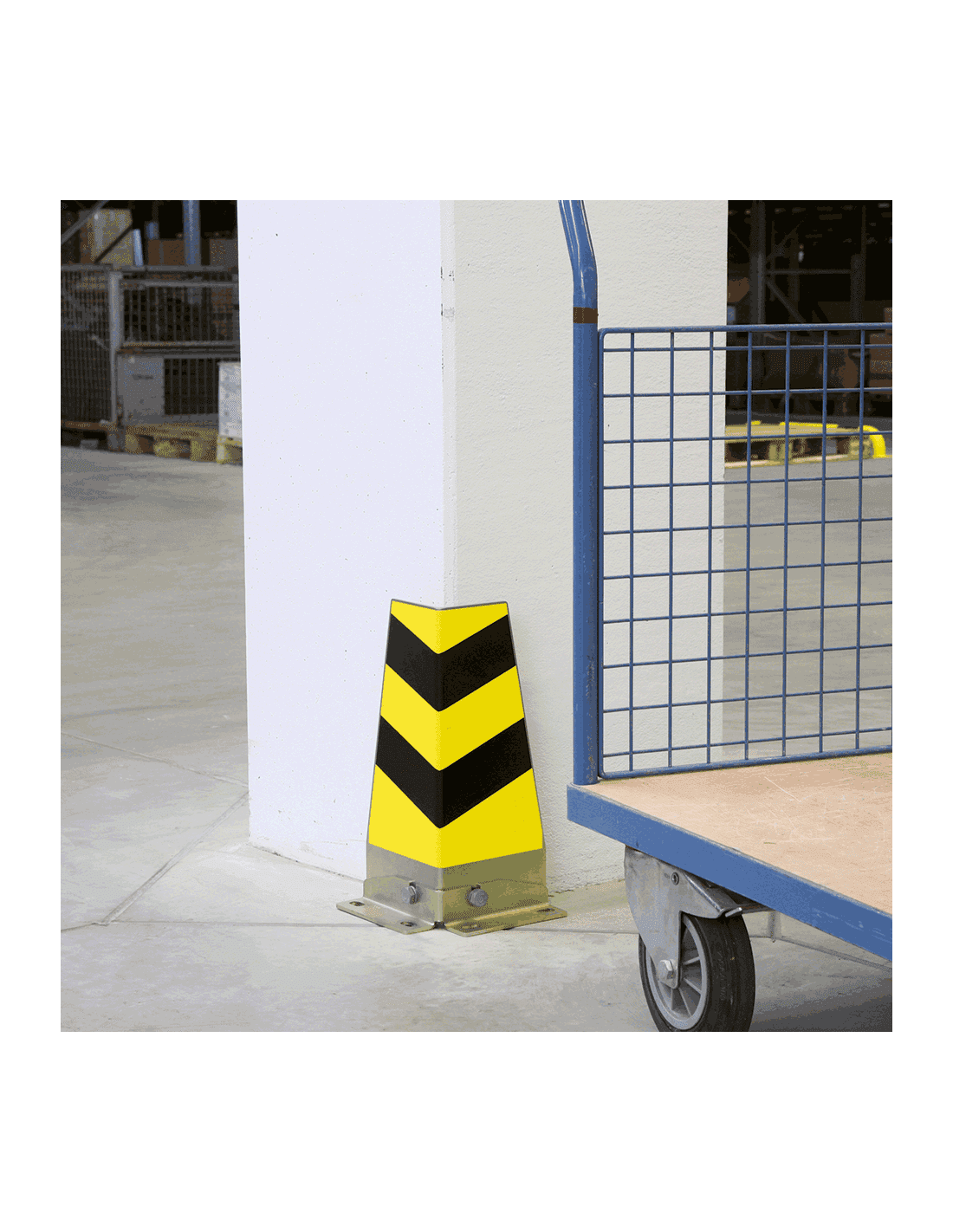 De hoekbeschermer muur met voetplaat, 400 mm, geel zwart is de ideale bescherming voor kwetsbare punten in jouw magazijn of op jouw bedrijfsterrein. Deze hoekbescherming moet bevestigd worden op de grond vandaar dat het product is voorzien van twee voetplaten met elk twee gaten. De beschermbeugels met voetplaat zijn gemaakt van verchroomd staal. Verder heeft dit product een hoogte van 400 millimeter en heeft het een opvallende geel zwarte kleur.