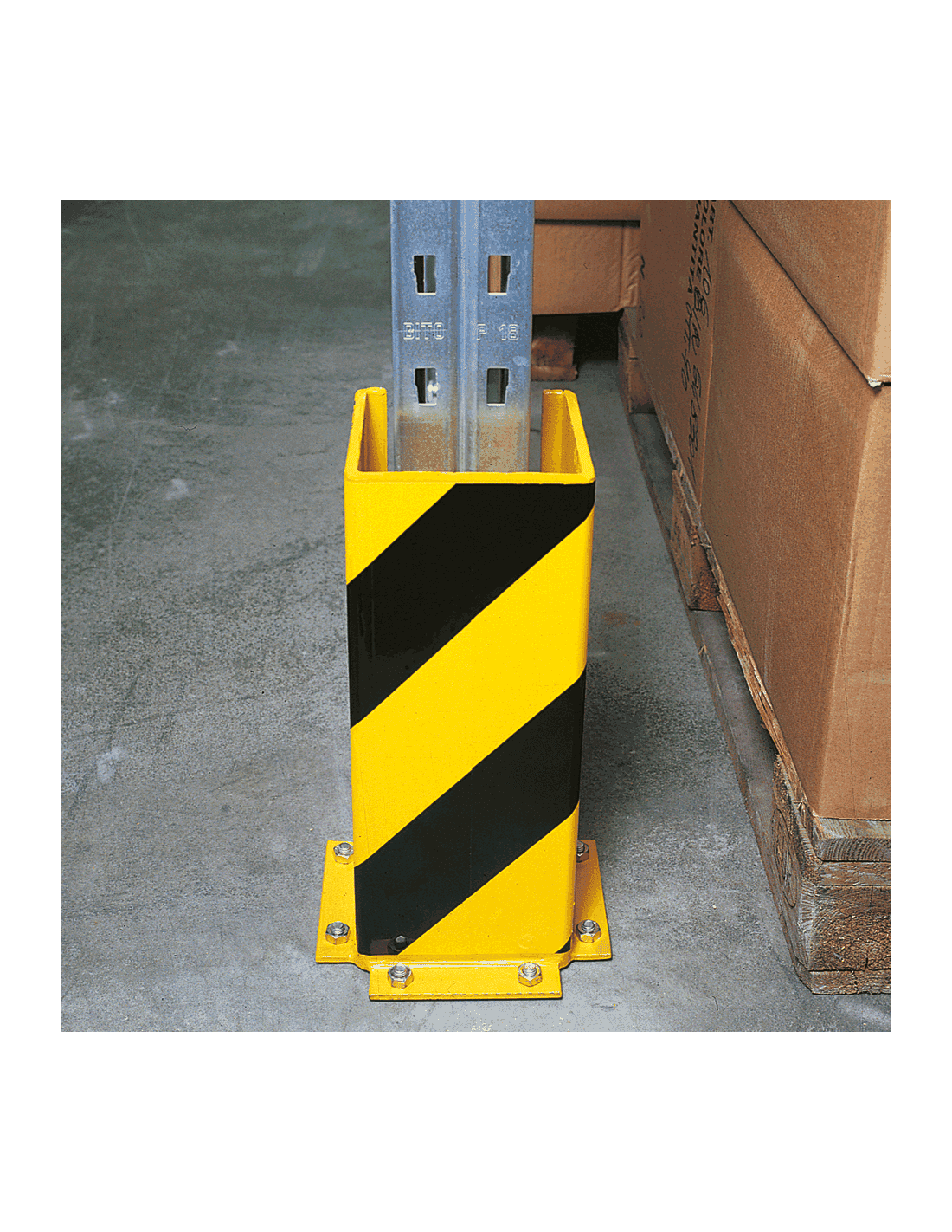 De kolombeschermer met strepen is eenvoudig te monteren en vereist geen aftekenen of voorboren. Boor simpelweg de gaten in het beton, plaats de keilbouten en draai deze vast. U kunt kiezen uit drie verschillende hoogtes, afhankelijk van uw individuele wensen. Voor tussenstaanders bieden wij een speciaal U-profiel aan dat de staander aan drie zijden beschermt bij het beladen of ontladen van uw stellingen.